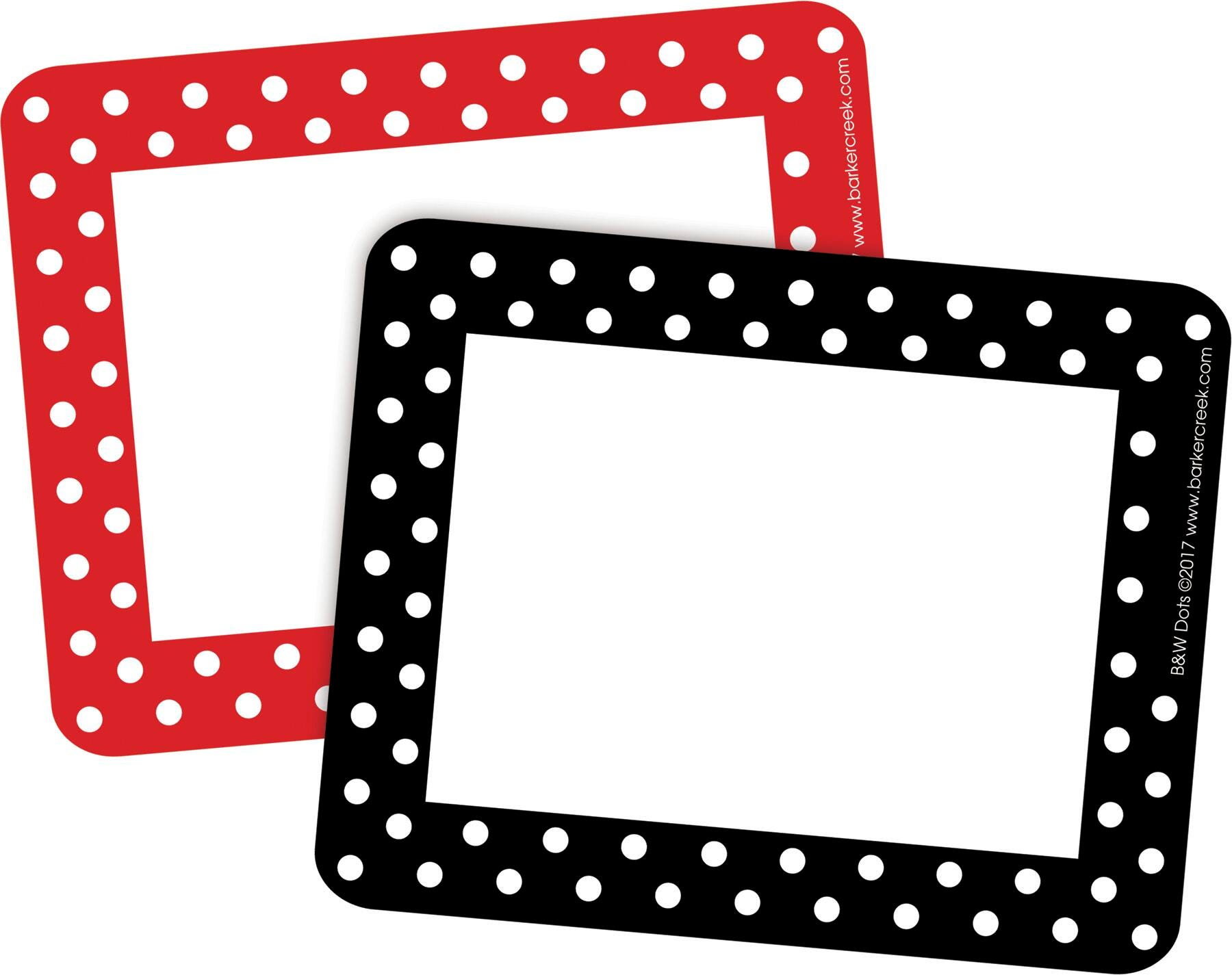 Talk about livening up your labeling system! Barker Creek Dot name tags/self-adhesive labels stand out from the rest with a 2 sets of classic yet bold polka dot borders (1 set of red and white, 1 set of black and white). Use them as name tags, of course, and for labeling just about anything you want to keep track of! They make wonderful book plates for your classroom library, address labels, and gift tags, too. Set coordinates with Barker Creek's Dot collection (search "Barker Creek Dot" in our search engine bar).Features