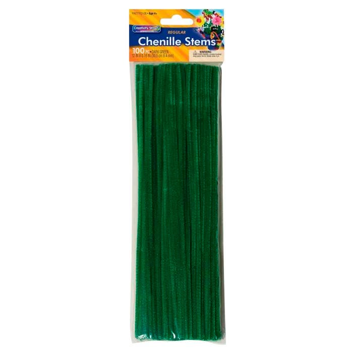 Creativity Street Standard Chenille Stems in dark green measures 1/8 in x 12 inches. Standard stem is a classroom staple for modeling, multi-media and more. Stem is great for a wide variety of craft projects and sold as 100 per pack.