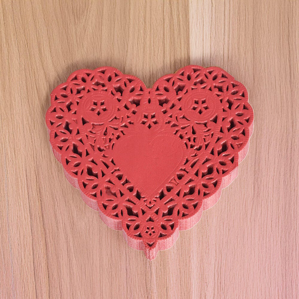 The School Smart Heart Shaped Paper Lace Doily will inspire countless arts and crafts projects. Add an elegant touch to paper crafts like scrapbooks and greeting cards, or simply use as a home decoration with a delicate lace pattern to catch the eye. These red heart-shaped doilies are die-cut and measure 4 inches in diameter. The doilies are sold as a pack of 100 hearts.