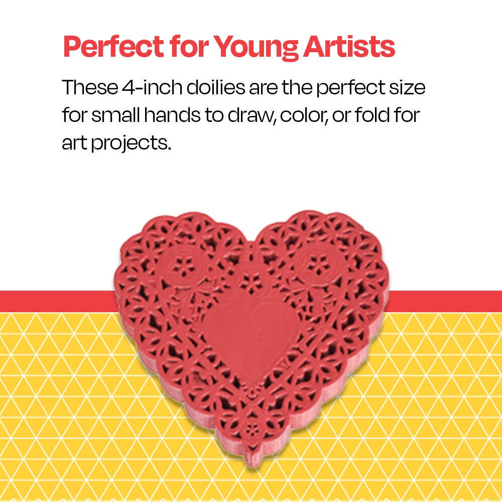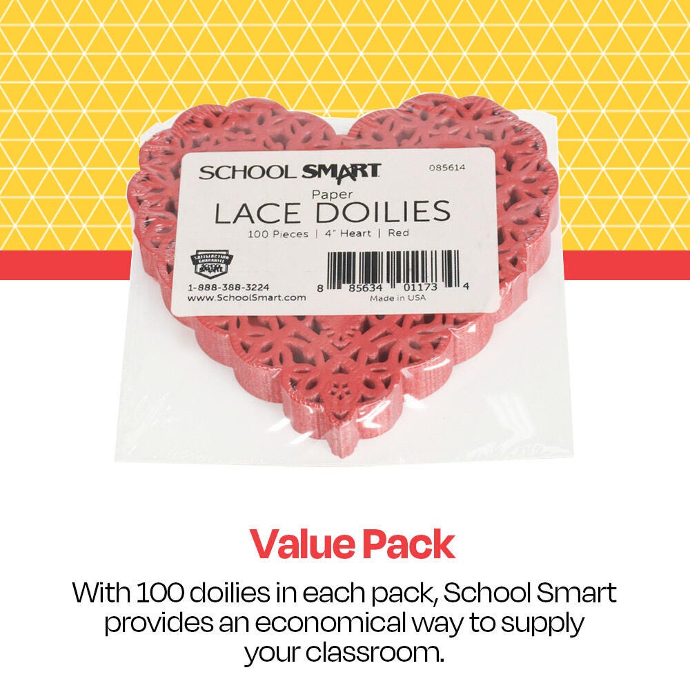 School Smart Paper Die-Cut Heart Lace Doily, 4 Inches, Red, Pack of 100