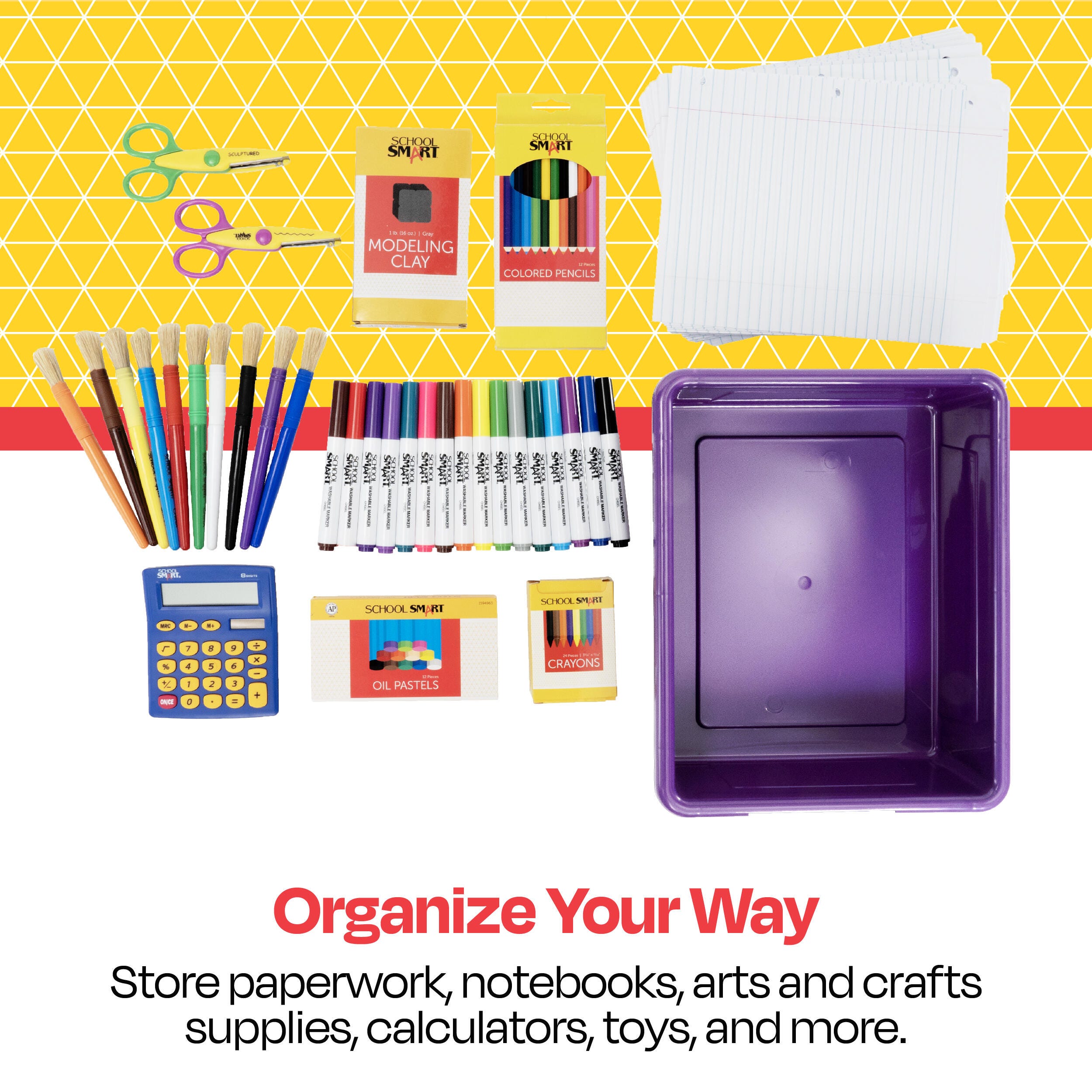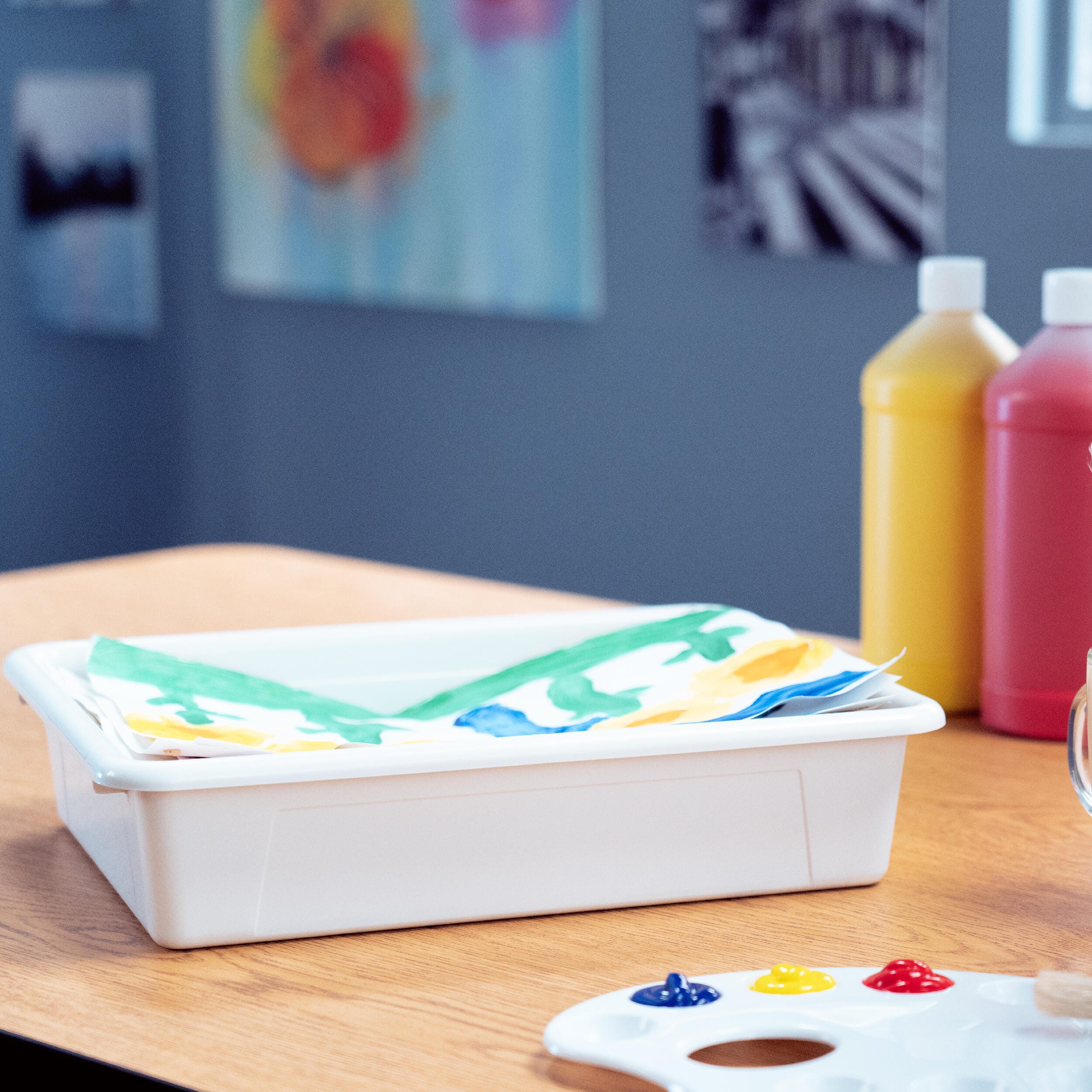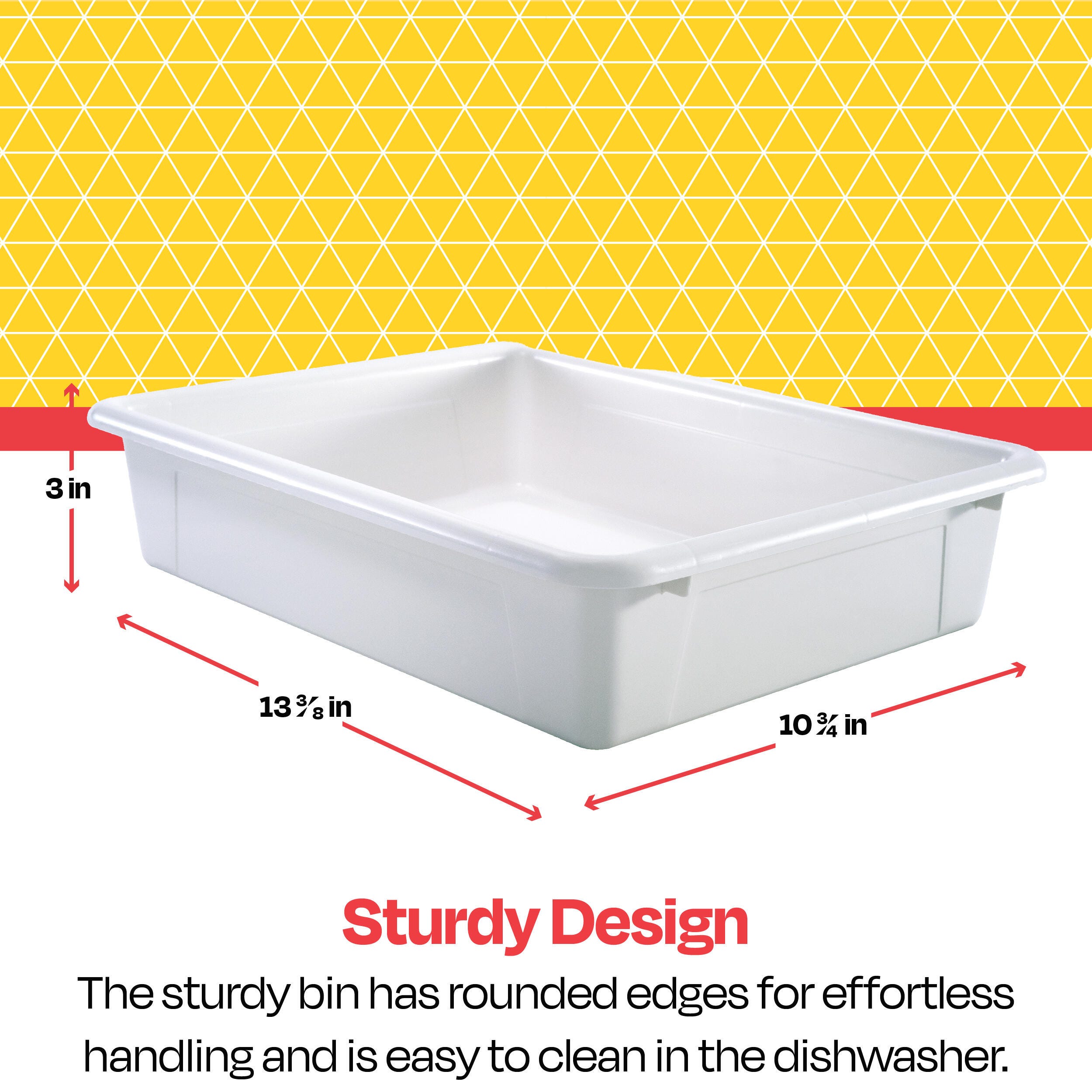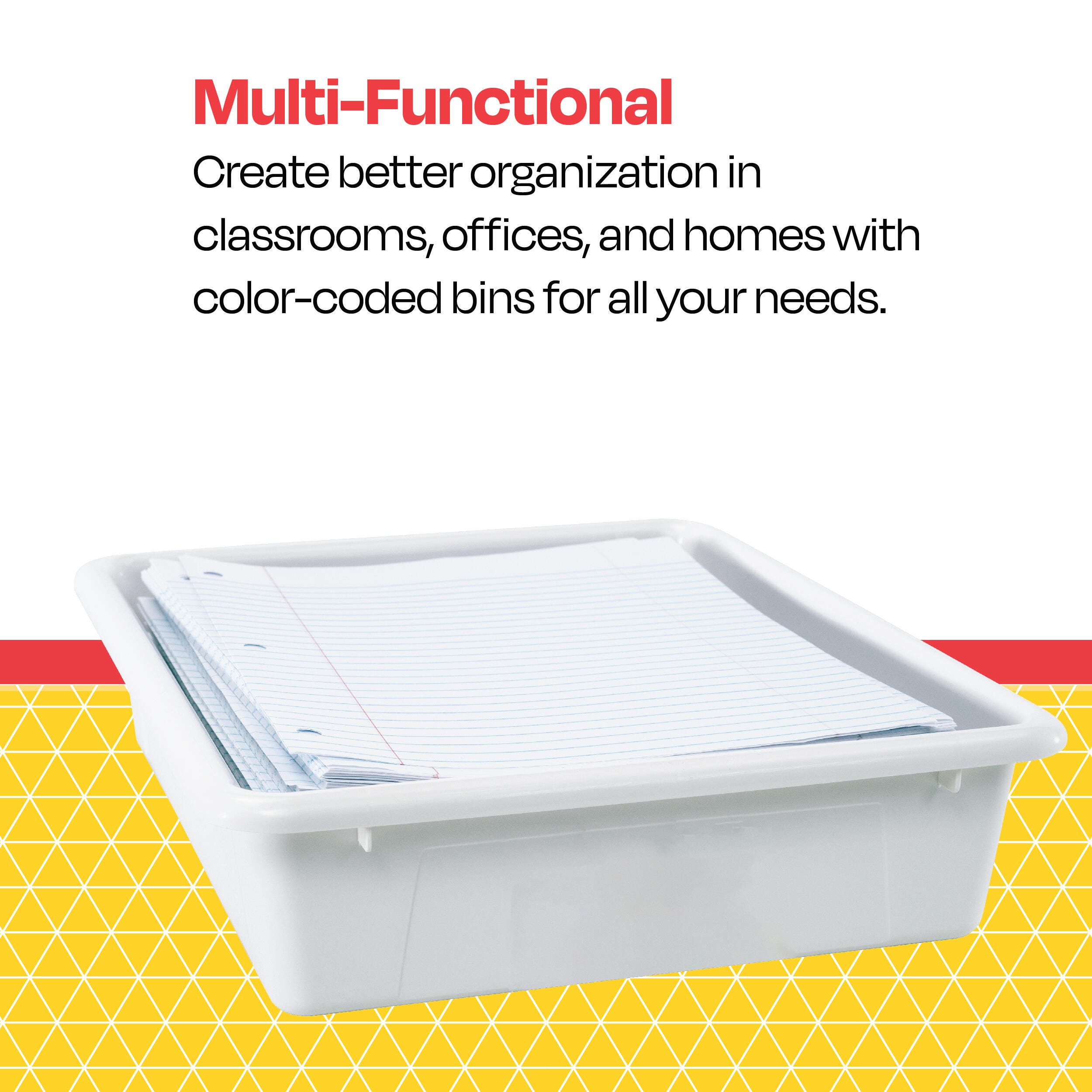 School Smart white storage trays are designed to neatly organize all your letter-sized handouts, booklets, and papers. Our smaller letter size plastic storage containers are made of nonporous plastic and are dishwasher-safe and drop-resistant. Whether you’re teaching STEM or STEAM, colored bins help with classroom organization, and your imagination sets the limit. Use the plastic bins for elementary schools, kindergarten, preschool, childcare centers, and playrooms. Each box works well as a school supply storage bin, arts and crafts container, toy organizer, and more.