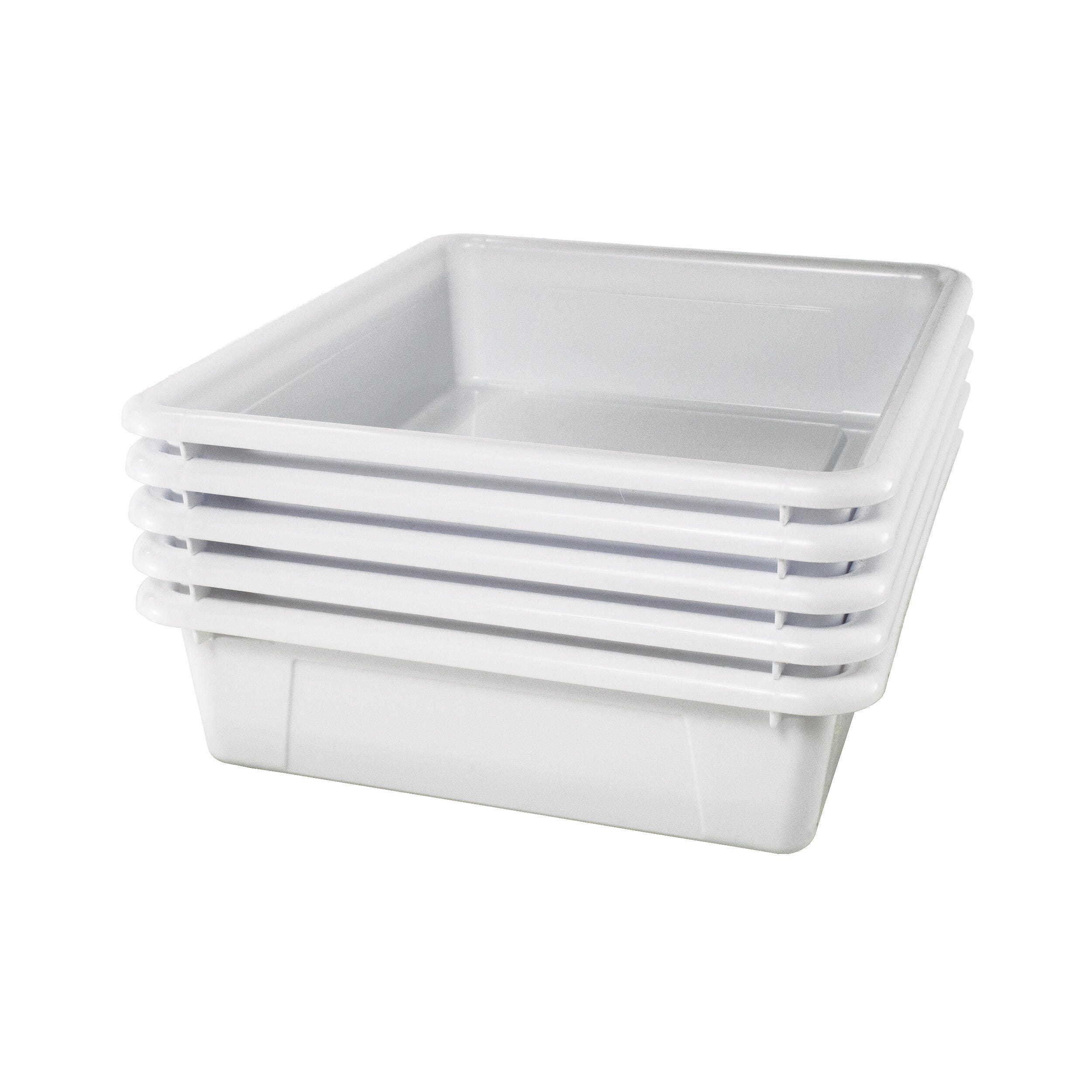 School Smart Storage Tray, Letter Size, 10-3/4 x 13-1/4 x 3 Inches, White, Pack of 5
