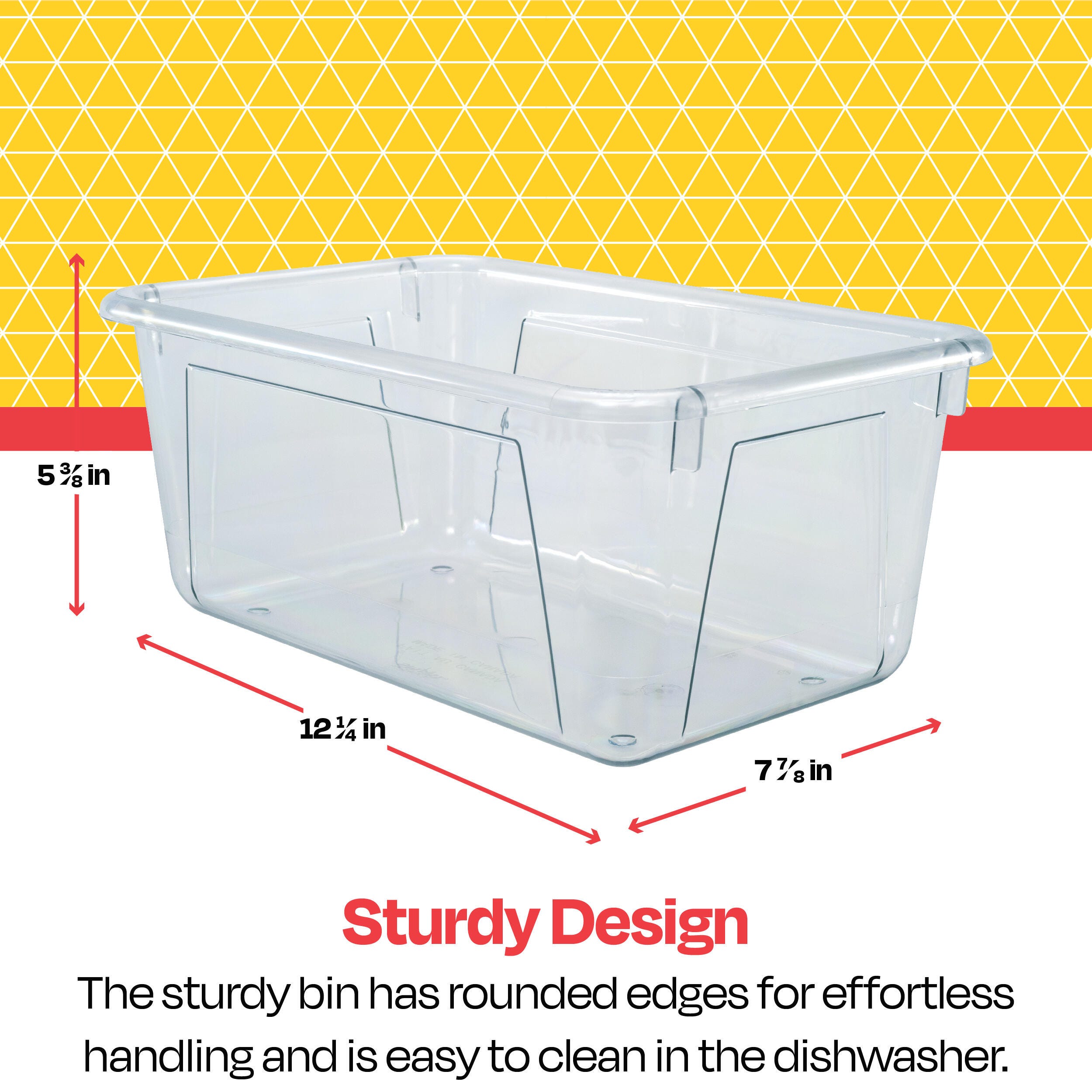 Organize your classroom with School Smart clear storage bins. Our plastic cubby bins are easy to use and hold, and the see-through design simplifies storage. Place them on their own or on cubby shelves, or stack them when not in use. Whether you’re teaching STEM or STEAM, the clear storage container pack helps with classroom organization, and your imagination sets the limit. Use them for elementary schools, kindergarten, preschool, childcare centers, and playrooms.