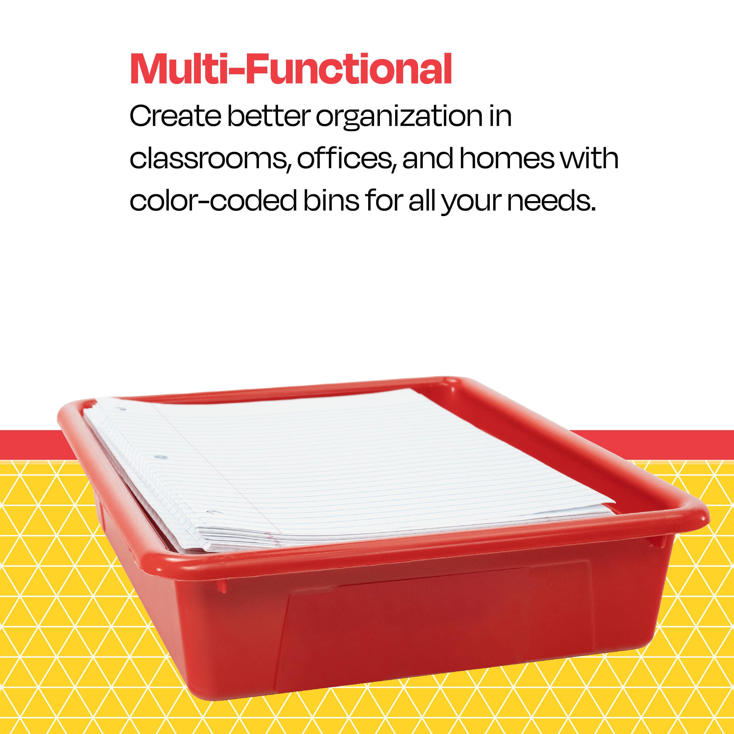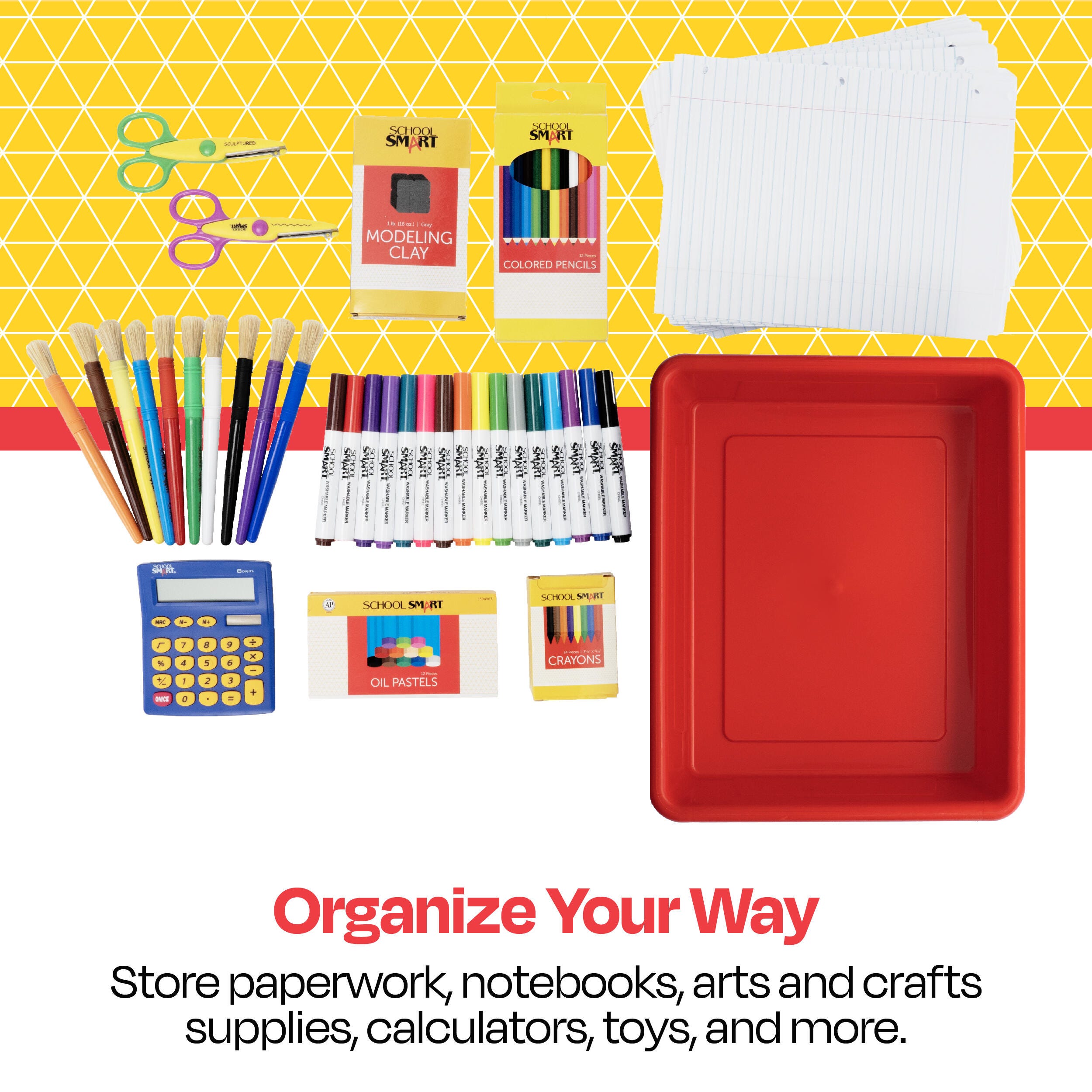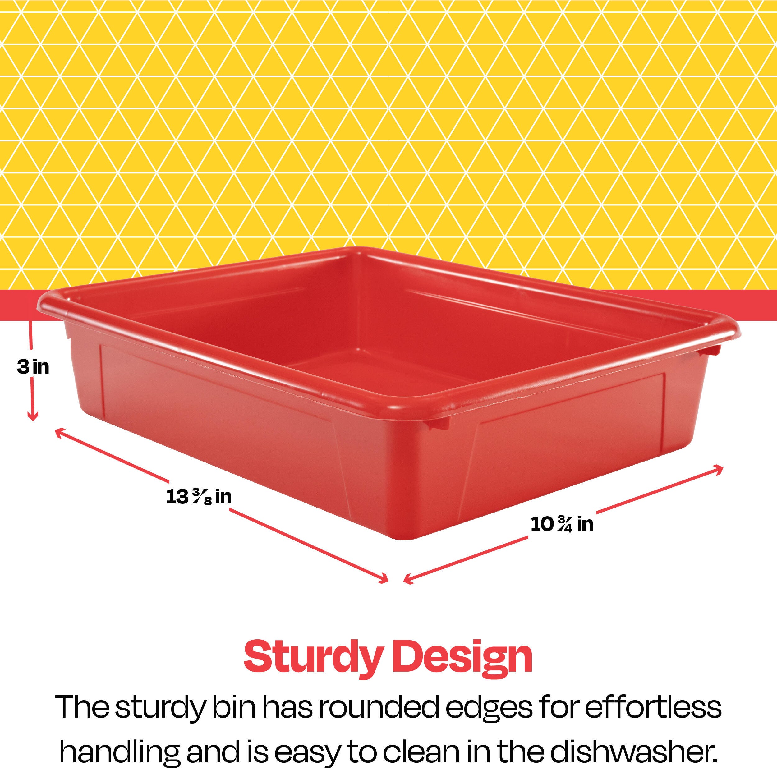 School Smart red storage trays are designed to neatly organize all your letter-sized handouts, booklets, and papers. Our smaller letter size plastic storage containers are made of nonporous plastic and are dishwasher-safe and drop-resistant. Whether you’re teaching STEM or STEAM, colored bins help with classroom organization, and your imagination sets the limit. Use the plastic bins for elementary schools, kindergarten, preschool, childcare centers, and playrooms. Each box works well as a school supply storage bin, arts and crafts container, toy organizer, and more.