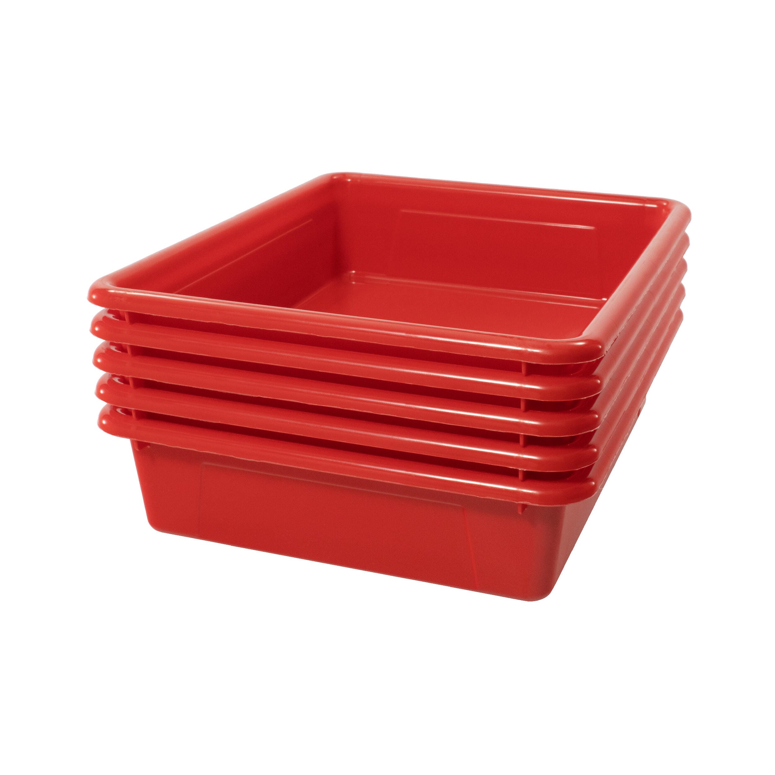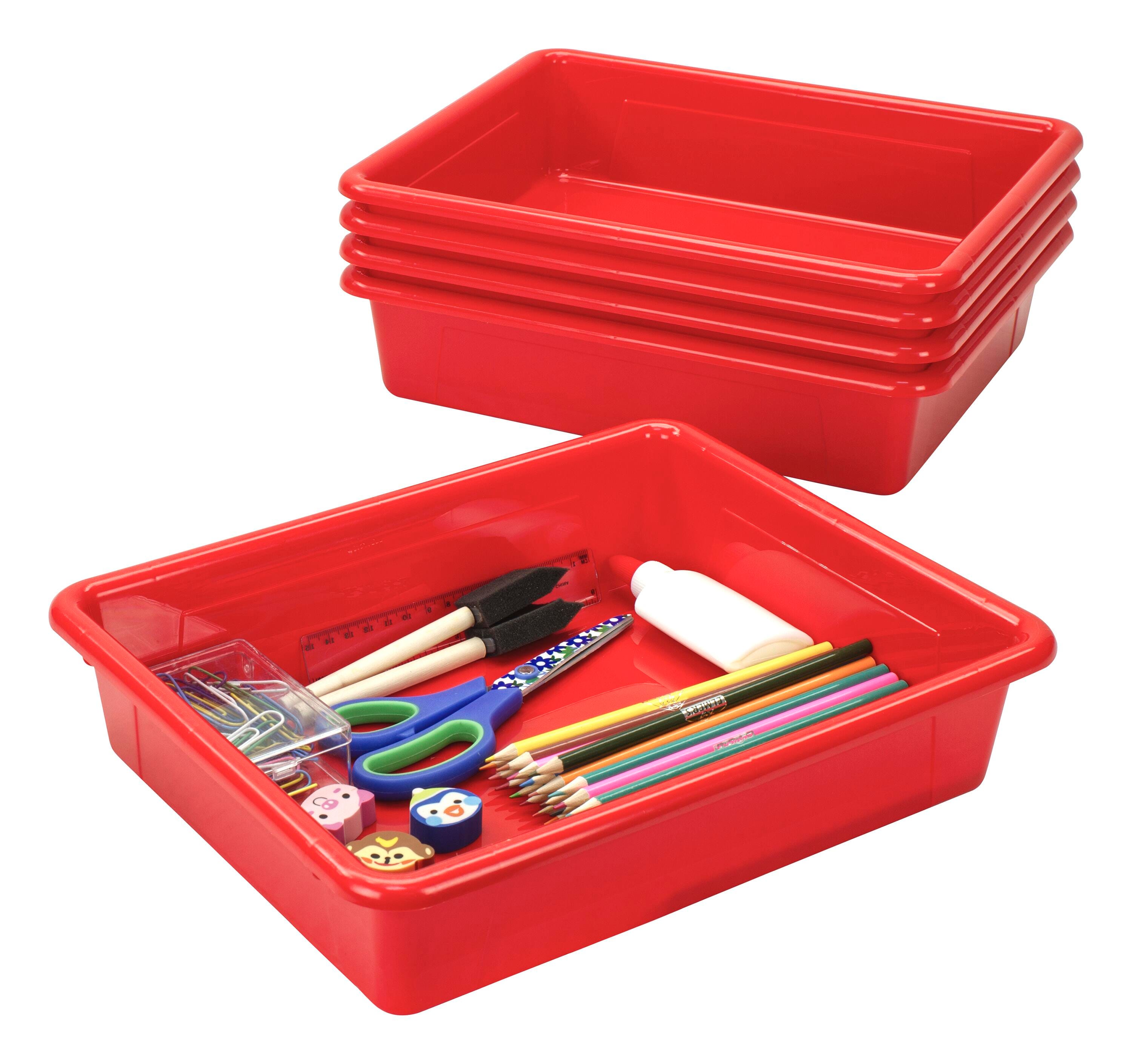 School Smart Storage Tray, Letter Size, 10-3/4 x 13-1/4 x 3 Inches, Red, Pack of 5