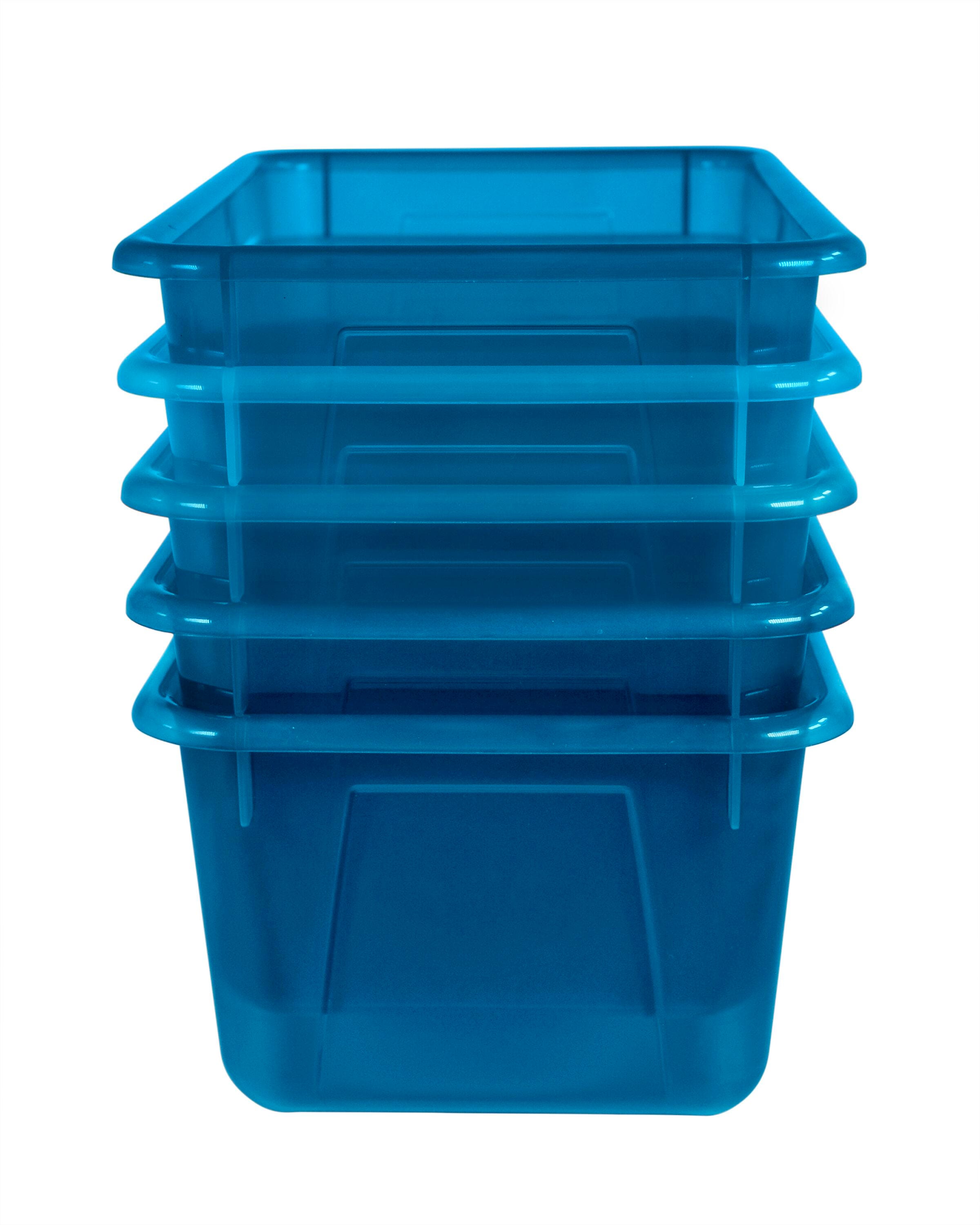 School Smart Translucent Storage Bin, 7-7/8 x 12-1/4 x 5-3/8 Inches, Teal, Pack of 5