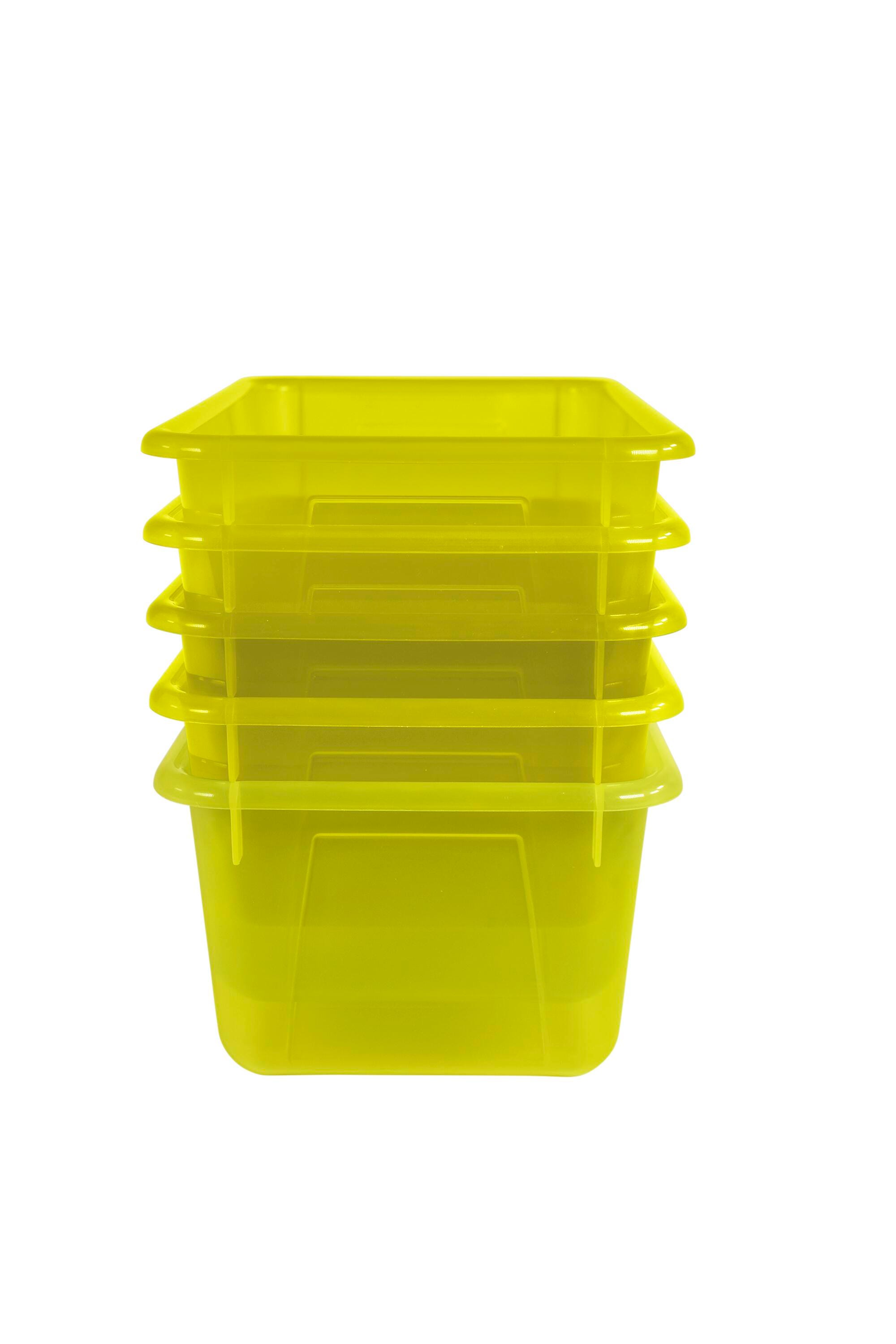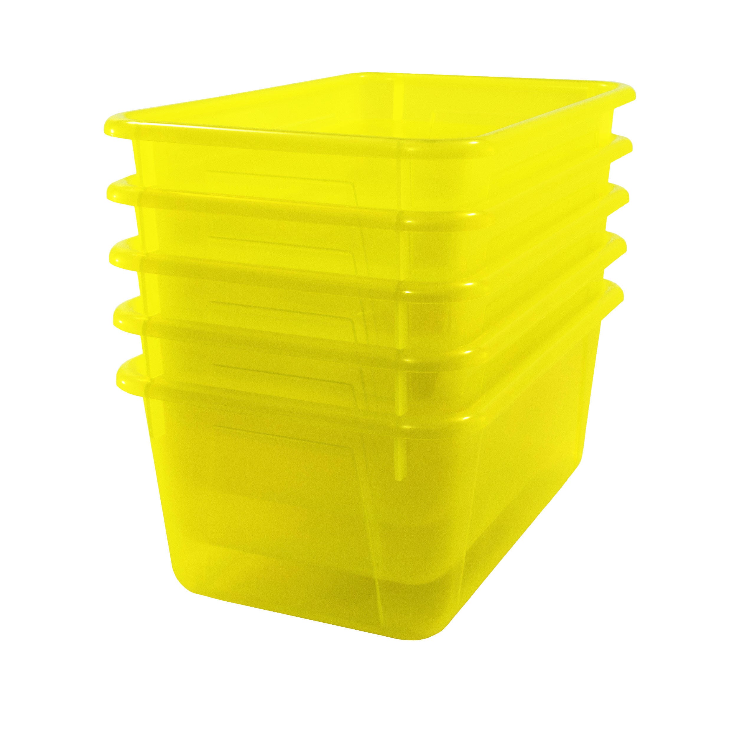 School Smart Translucent Storage Bin, 7-7/8 x 12-1/4 x 5-3/8 Inches, Yellow, Pack of 5