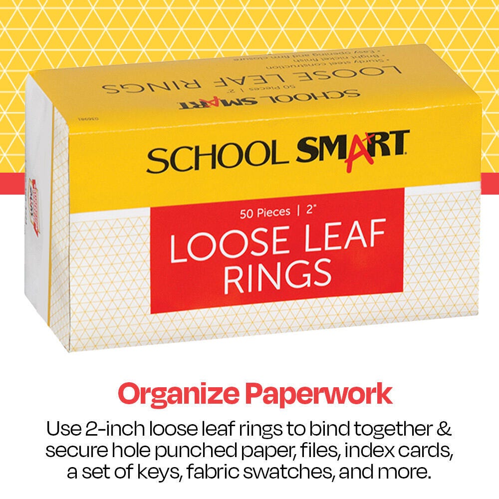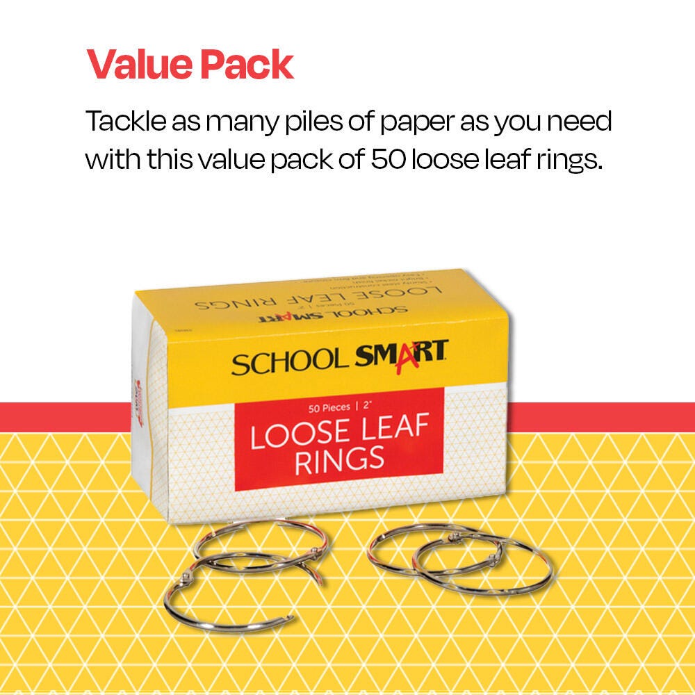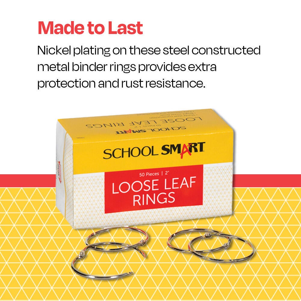 School Smart Loose Leaf Rings, 2 Inches, Nickel Plated Steel, Pack of 50
