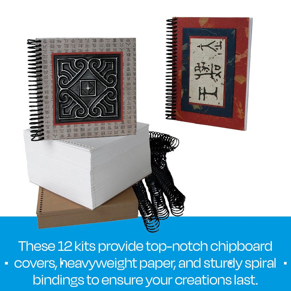 Students can sketch, write, and design with this innovative, all-in-one Spiral Bookmaking Kit from Sax! This kit contains all the materials you need to make 12 chipboard-covered, spiral-bound books with 50 white (80 lb weight basis) paper sheets inside for sketching and writing. The inside and outside of journals can be embellished with nearly any medium, including gel markers, paint, mosaics, specialty paper, and glitter glue. The kit can serve as a great introduction to free-form writing, gratitude journals, writing a "first book," quiet time activities, planners, and more at home or in the classroom. The binding coils are black. The pages and covers measure 5 x 7 inches.Features