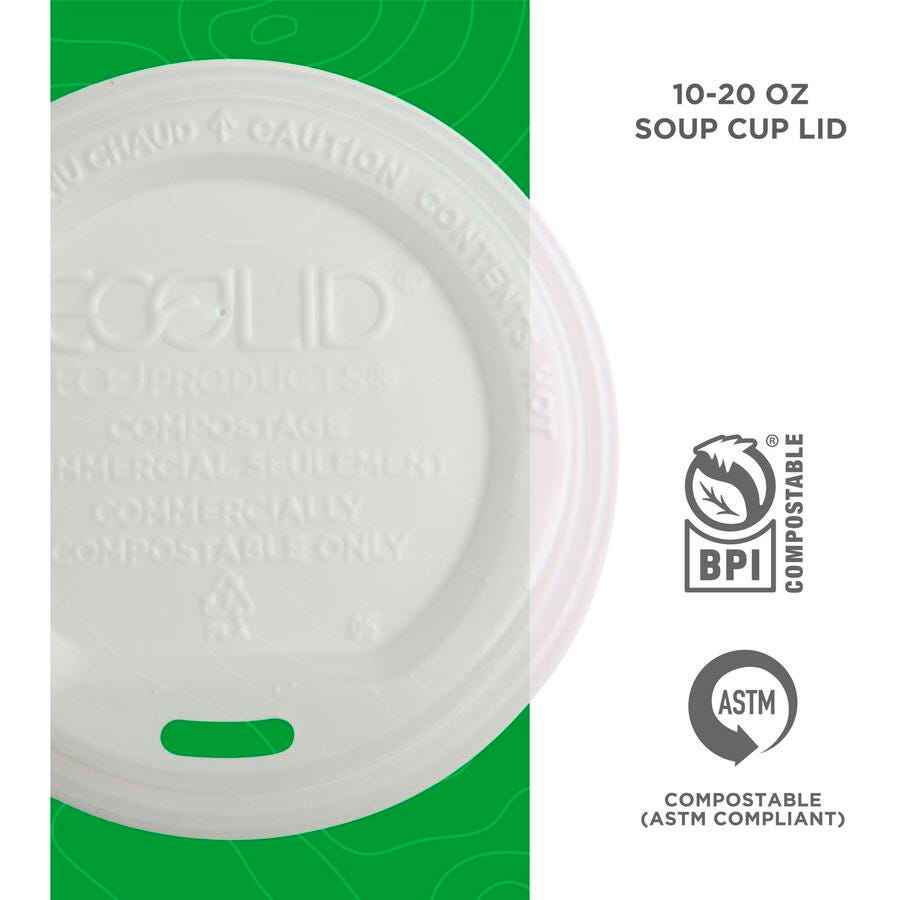 Eco-Products Renewable EcoLid Hot Cup Lids, Fits 10-20 oz Cups, White, 50 Per Pack