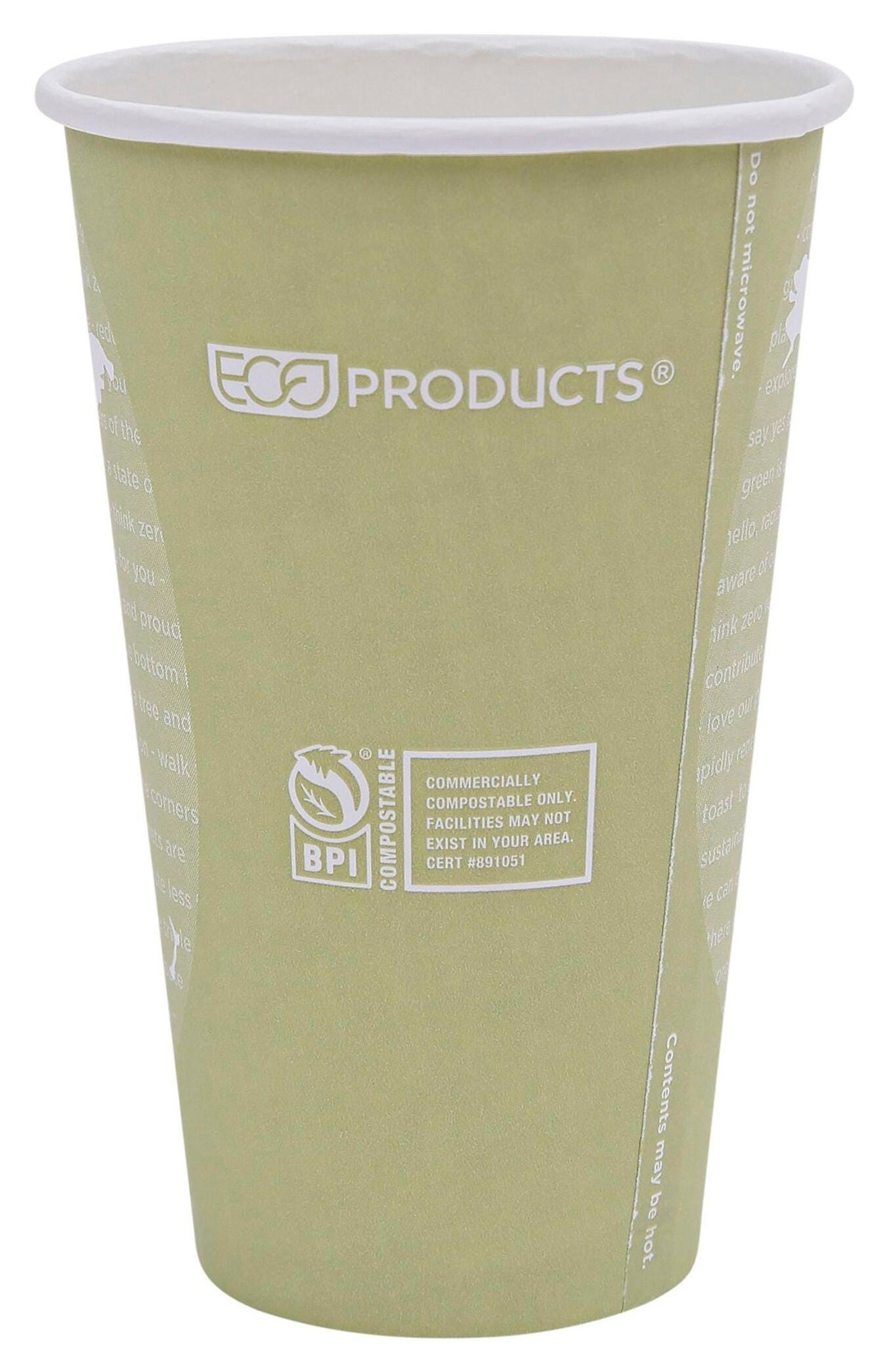 Eco-products World Art Compostable Renewable Smooth Rolled Rim Hot Beverage Cup, 16 oz, Natural Plastic, Green, Pack of 1000