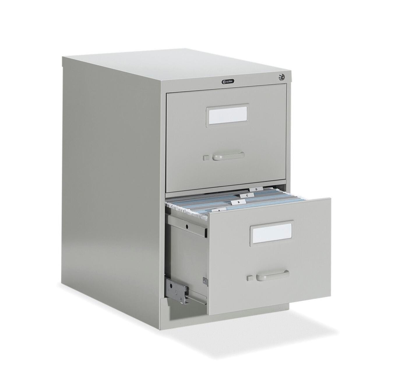 Locking Global Vertical Files have full extension ball-bearing suspension to provide smooth and durable drawer movement.