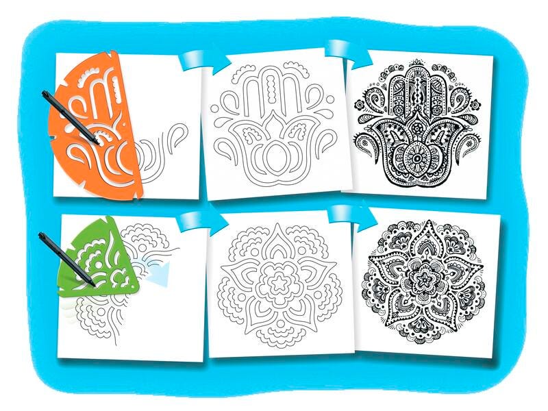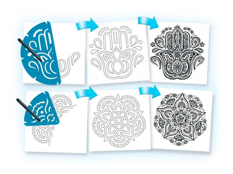 Improve dexterity by twisting stencils and using a pencil to create