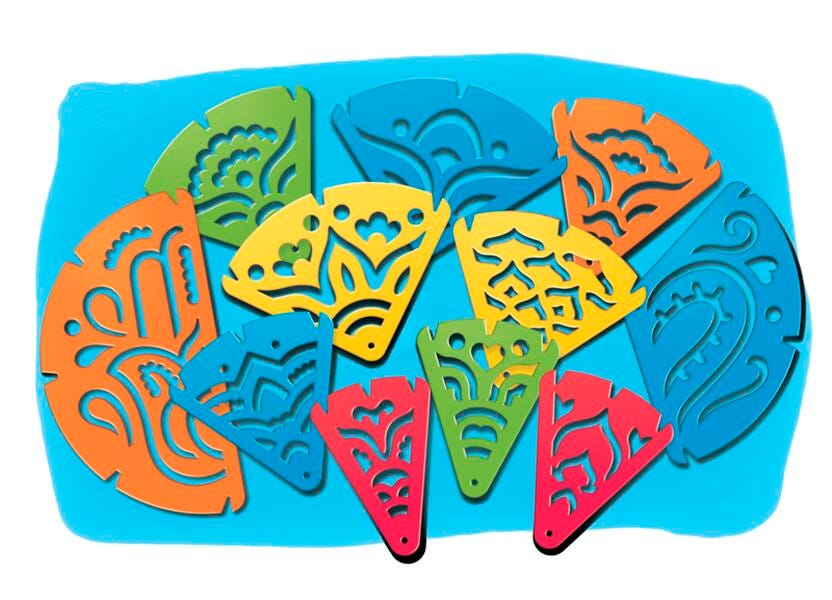 Watch as precision meets artistic expression! Mandalas, the mesmerizing geometric representations of the cosmos, take a mathematical twist with these unique stencils. Split into four pie-shaped pieces, these stencils teach early fraction exploration while allowing young minds to complete intricate patterns. Place all four pieces together to create a beautiful work of art!