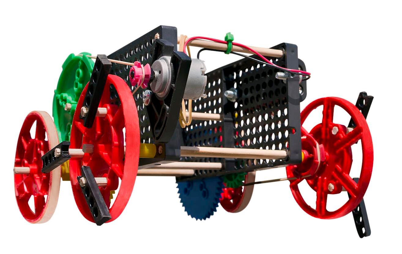 Ready? Set... GO! Get kids burning rubber as they engineer their very own Electric Race Cars. Kids can experiment with different combinations of gears and pulleys, dialing in the mechanical advantage to make their car go faster, conquer obstacles, or pull a load. Kids can even go totally off-road/outside the box and use their parts to engineer a walking robot! Grades 5 – 12 (different documents for different ages). Some adult assistance is helpful for 5th-graders. TeacherGeek is not a toy; it’s way better! Kids love making real things, especially when they get to use age-appropriate tools. Kids will need a TeacherGeek Multi-Cutter, Phillips screwdriver, pliers, and 2 AA Batteries to make each Car.