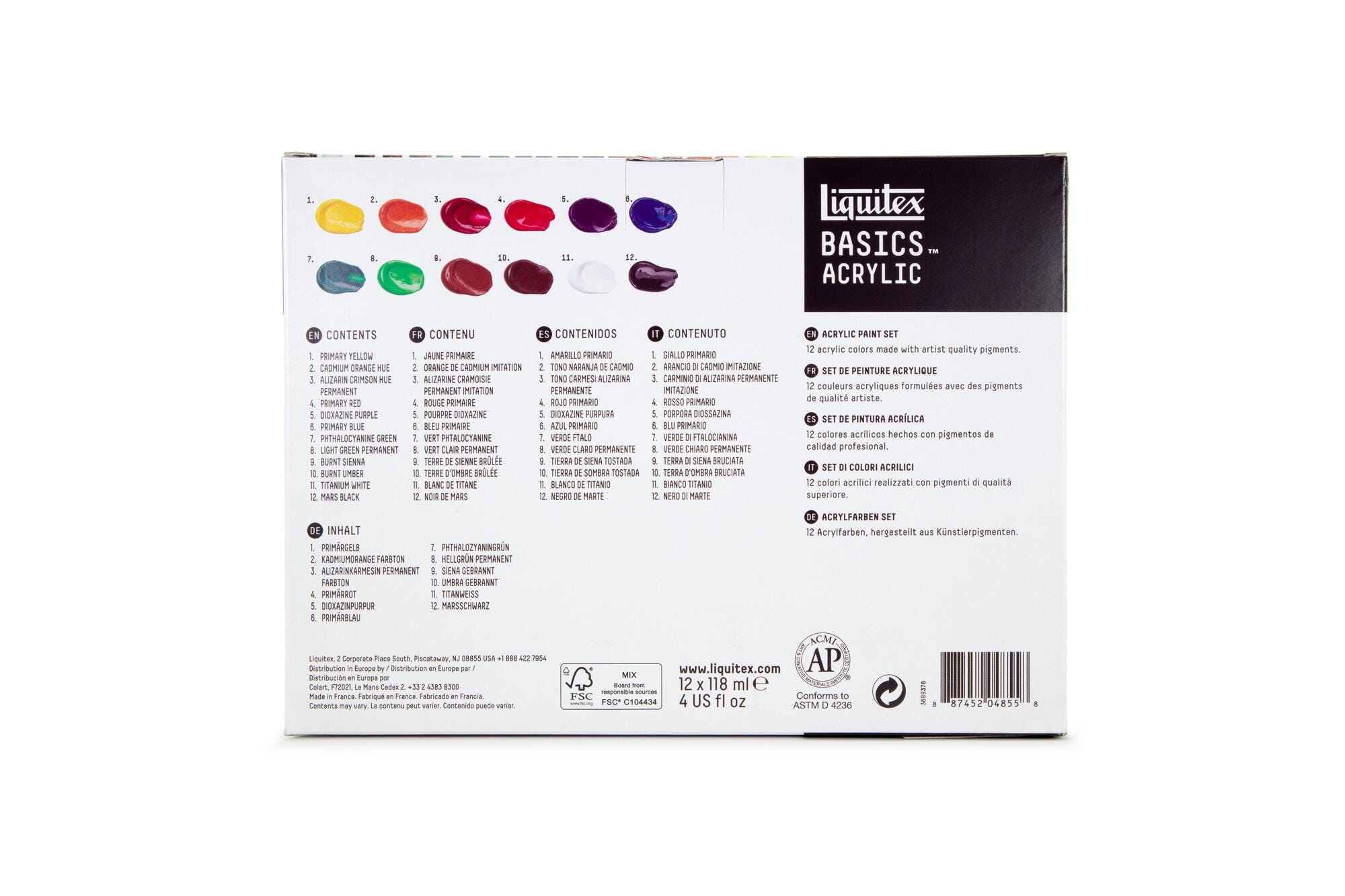 Liquitex Basics Acrylic Paints, 118mL Tubes, Assorted Colors, Set of 12