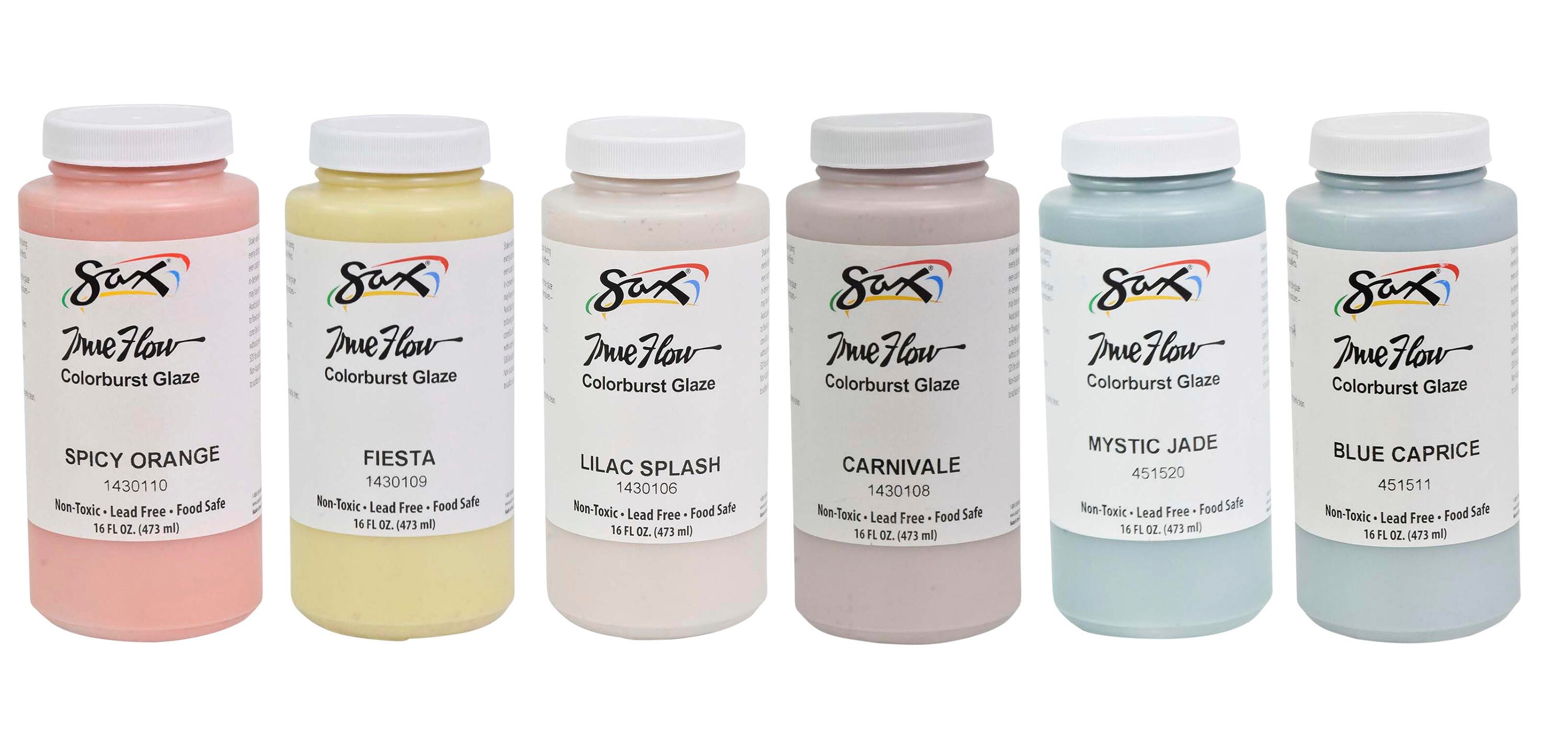 Sax True Flow Colorburst Glazes, Assorted Colors, Set of 6 Pints