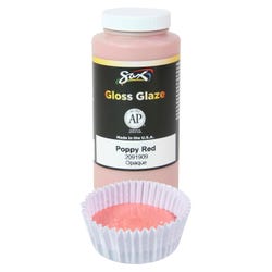 The Sax gloss glaze in opaque Poppy Red is a high-quality glazing paint that's non-toxic and dinnerware safe when fired to cone 06-05. During application, the glaze may be a different color and will change to the desired look after the required kiln firing. The color does not change when fired at cone 6.Features
