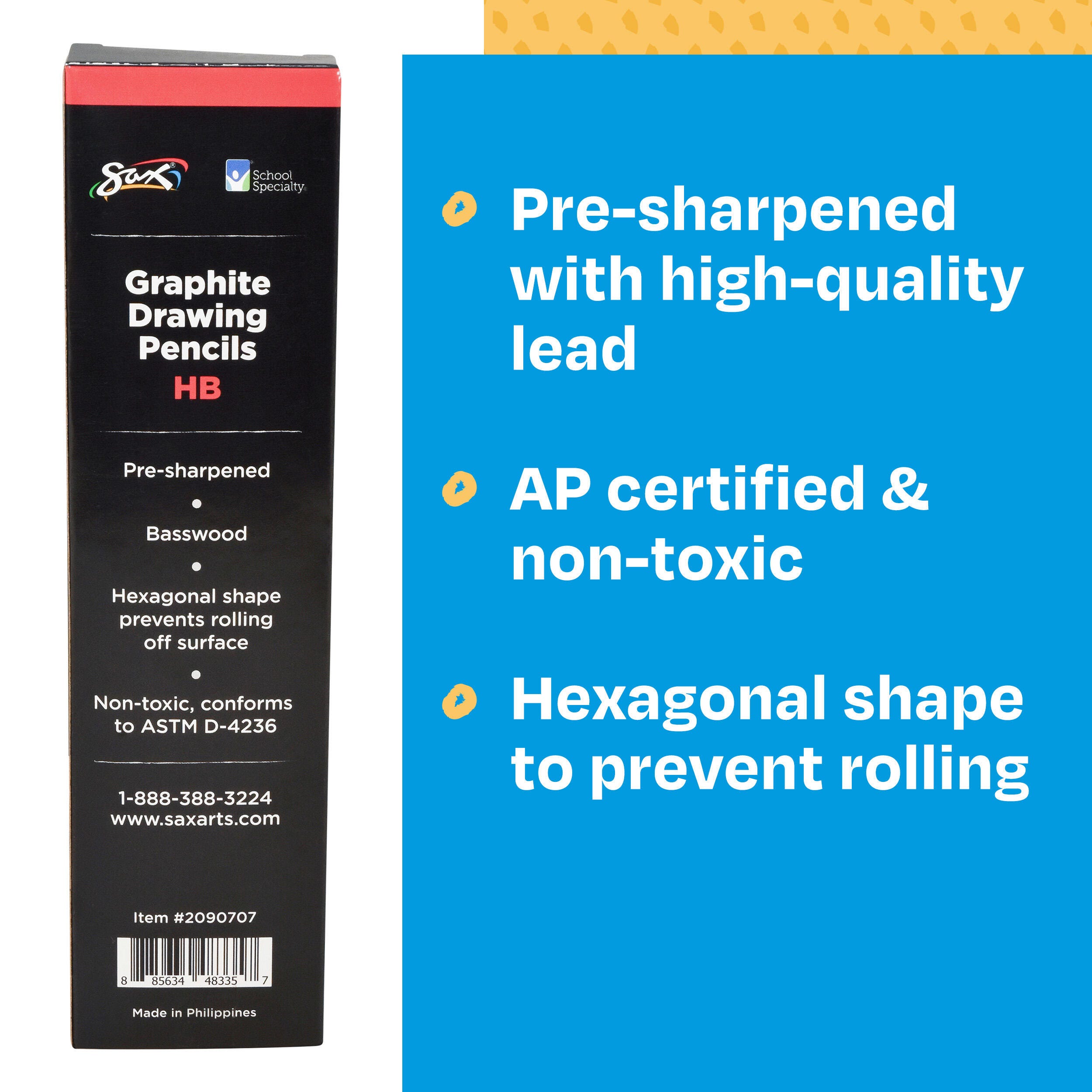 Sax Graphite Drawing Pencil Pack, HB Lead Hardness Degree, Set of 12