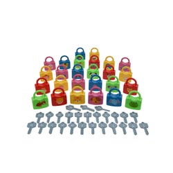 Plastic locks with correpsonding keys makes learning the alphabet fun! Locks will only open when the correct key is used. Locks are 2-1/2 x 3-1/4 x 1-1/8 inches. Keys are 2-5/8 x 1-1/4 inches. Ages 3 and up.