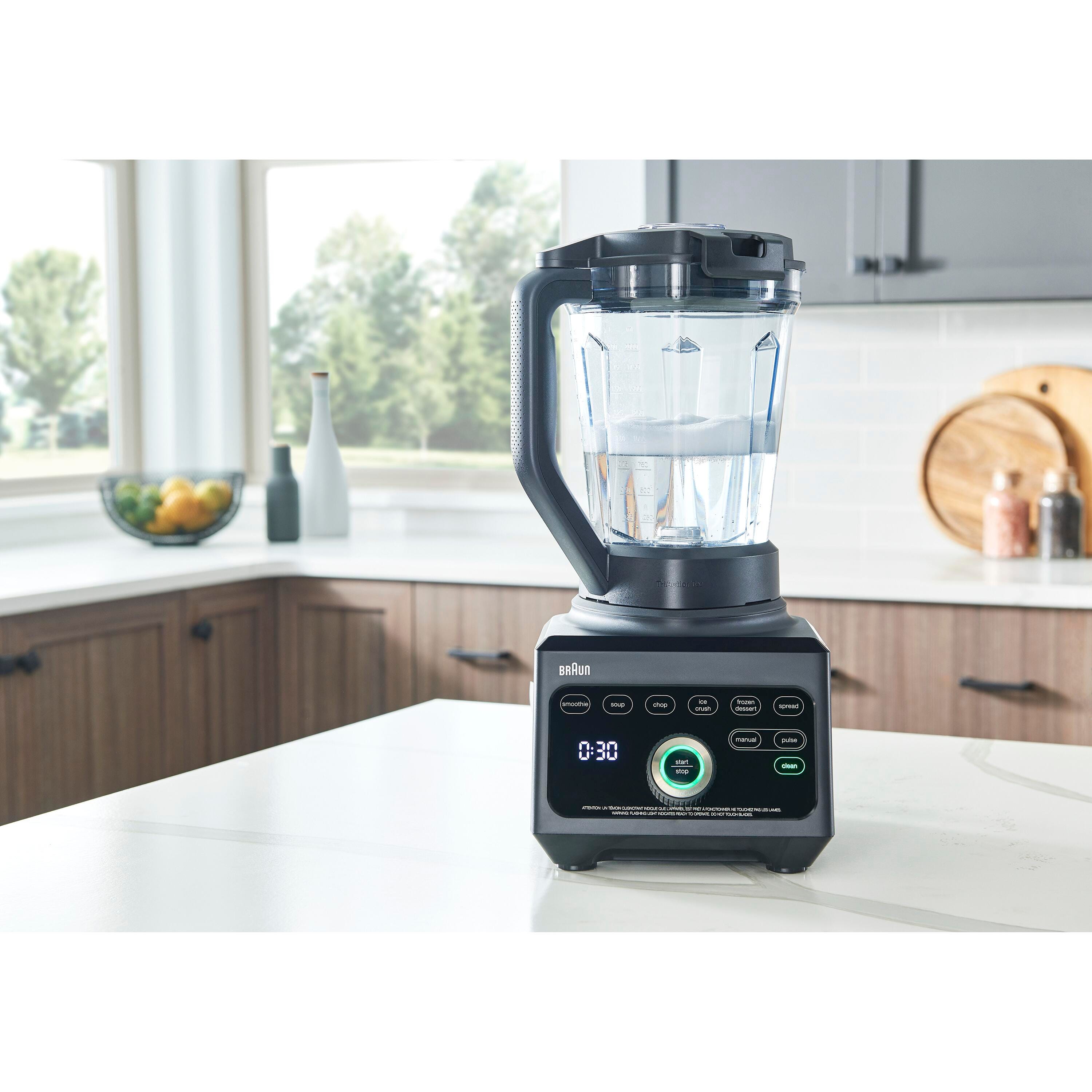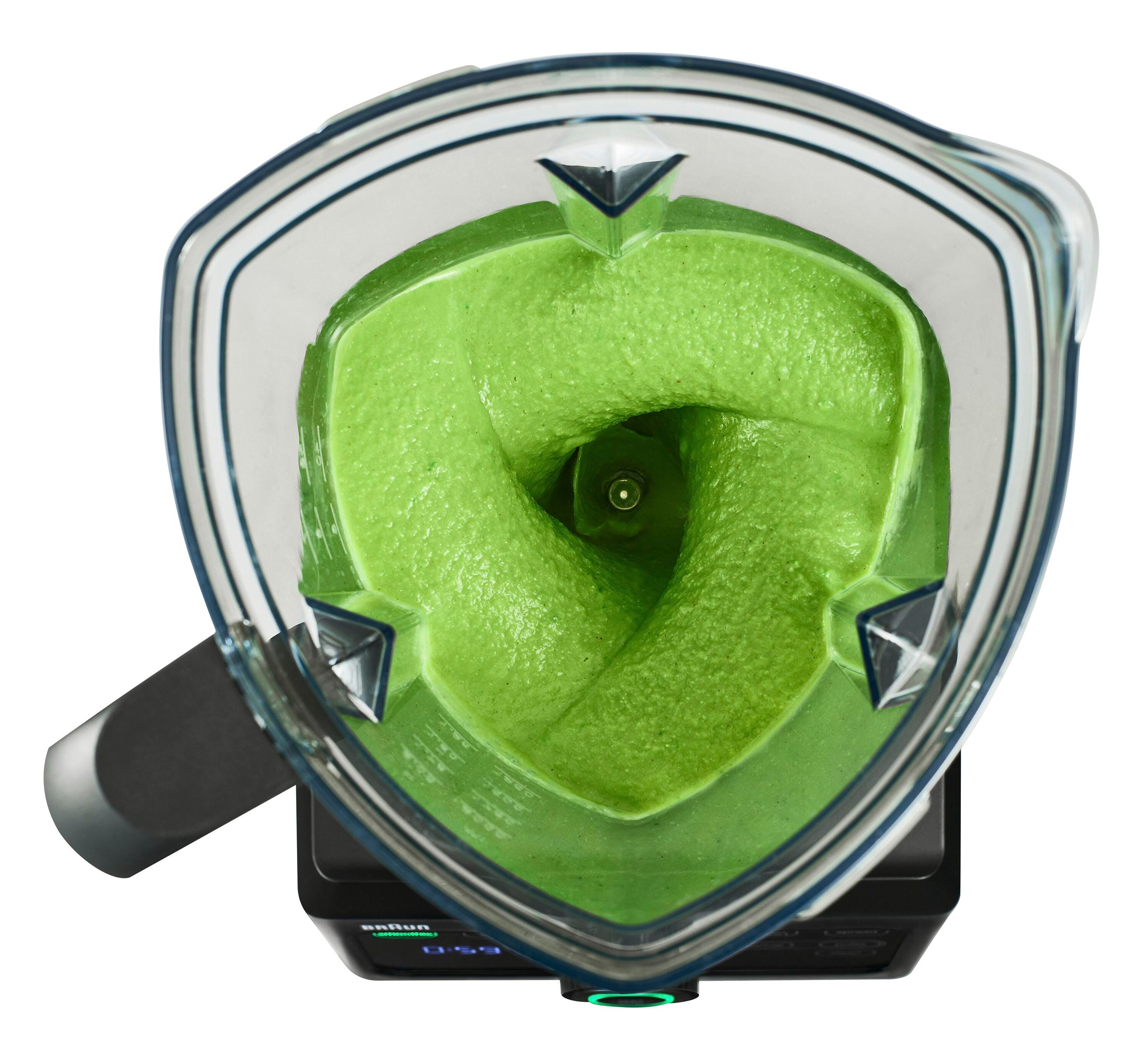 The all-new Braun TriForce power blender is a powerhouse kitchen performer with superior speed and selection for an effortless personalized blending experience beyond compare. The first-ever power blender to feature a TriAction technology jug, designed with a triangular shape with the long-lasting, durable material. This sophisticated engineering guarantees 60% finer and 4x faster blending. The seamless intuitive interface makes it easy to quickly master recipes thanks to the iTextureControl functionality. Simply select any one of the 6 automated programs to start, then choose between one of 3 unique texture settings – smooth, medium, or coarse - for 18 possible blends as precise as your palate. It also has a smooth hot soup setting that simultaneously heats as it spins, resulting in the perfect soup texture and warm temperature, every time. It’s just one of many versatile features this Braun power blender brings to the kitchen.