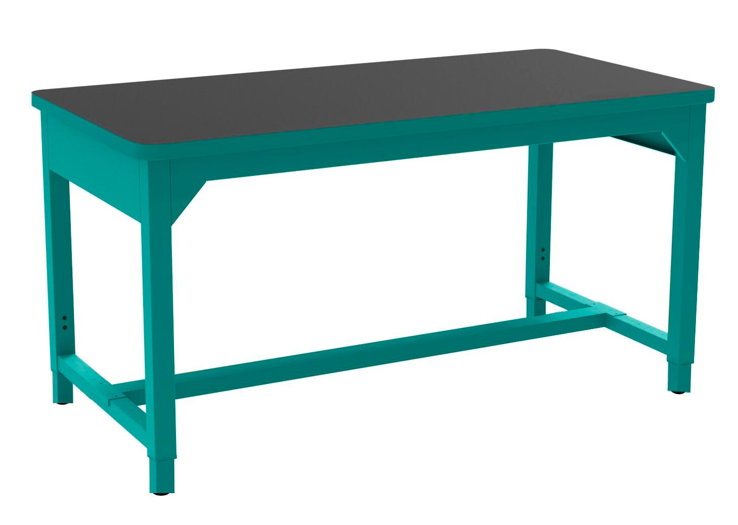 This workbench is designed to last as long as you need it. Its legs are made with 2 x 2-inch square steel outer tubes welded together, fortified by upper and lower cross braces and 1-3/4 x 1-3/4 inch square steel 14-gauge inner tubes. They're designed with riv-nuts spaced 1-inch on-center for easy height adjustments, and a 1-inch-thick top for ultimate support. An additional 14-gauge stretcher bar provides stability and rigidity to the table frame. This stretcher can be installed in the front, middle, or behind the leg frame. Available in several sizes, edge colors, frame colors, and top types. Please select the options that best fit your workspace when ordering.Features