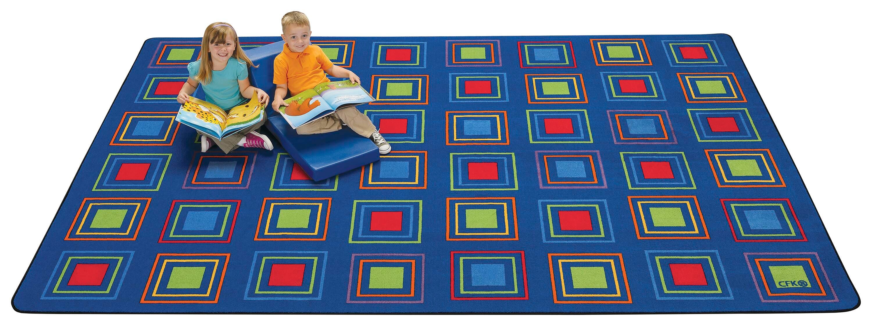 This Primary Squares rug accentuated in beautiful primary colors features squares that make it ideal for seating and classroom organization. The colorful carpet is perfect for story or circle time in playrooms, preschools, childcare centers, and classrooms. This lush area rug from the Carpets for Kids Premium Collection delivers unmatched quality and value that withstands rigorous play with the True Stain Blocker and KIDply Backing System technologies that ensure your carpet lasts longer and is easy to clean.Features