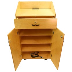 - Mobile podium with storage allows teachers to move from classroom to classroom with ease