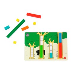 This set includes 74 Number Rods comprised at 1cm to 10cm lengths. The set also includes 25 double-sided activity cards and 1 Messy Tray. Number Rods help children visualize counting to 10. Each quantity is a different color and scored in 1cm, which helps with value identification and comparison. Teach children how to add, subtract and measure with the included activities. The activities also teach rotation, symmetry, and area. As children learn with the rods, they will improve fine motor skills, hand-eye coordination, and logical thinking. Use the included Messy Tray to keep activities contained during play. Packaged in a sturdy cardboard box for easy cleanup and storage. Size of Messy Tray: 10 L x 10 W in. Size of rods: 1cm - 10cm. Appropriate for ages 4 and up.Features