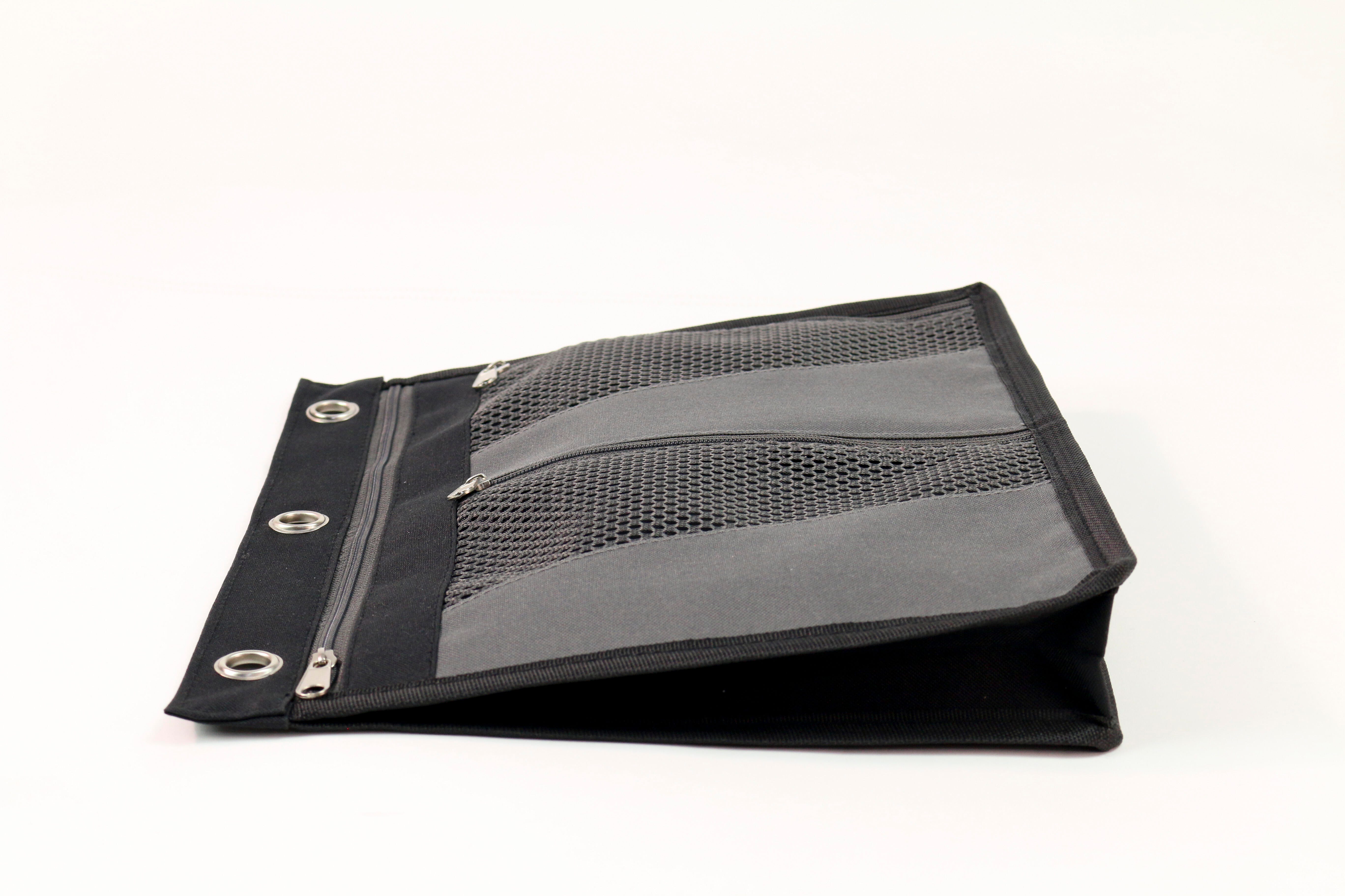 The School Smart Grey Binder Pouch provides a handy storage solution for your classroom and office essentials. The binder pouch features three 1/2 inch reinforced grommets and is designed to fit into 2 or 3-ring binders. It has a large zipper pocket and two smaller mesh zipper pockets that easily store pens, pencils, erasers, notes, and more. The 9 x 11 inch pouch expands 1-1/2 inches to fit a variety of supplies of different sizes.Features