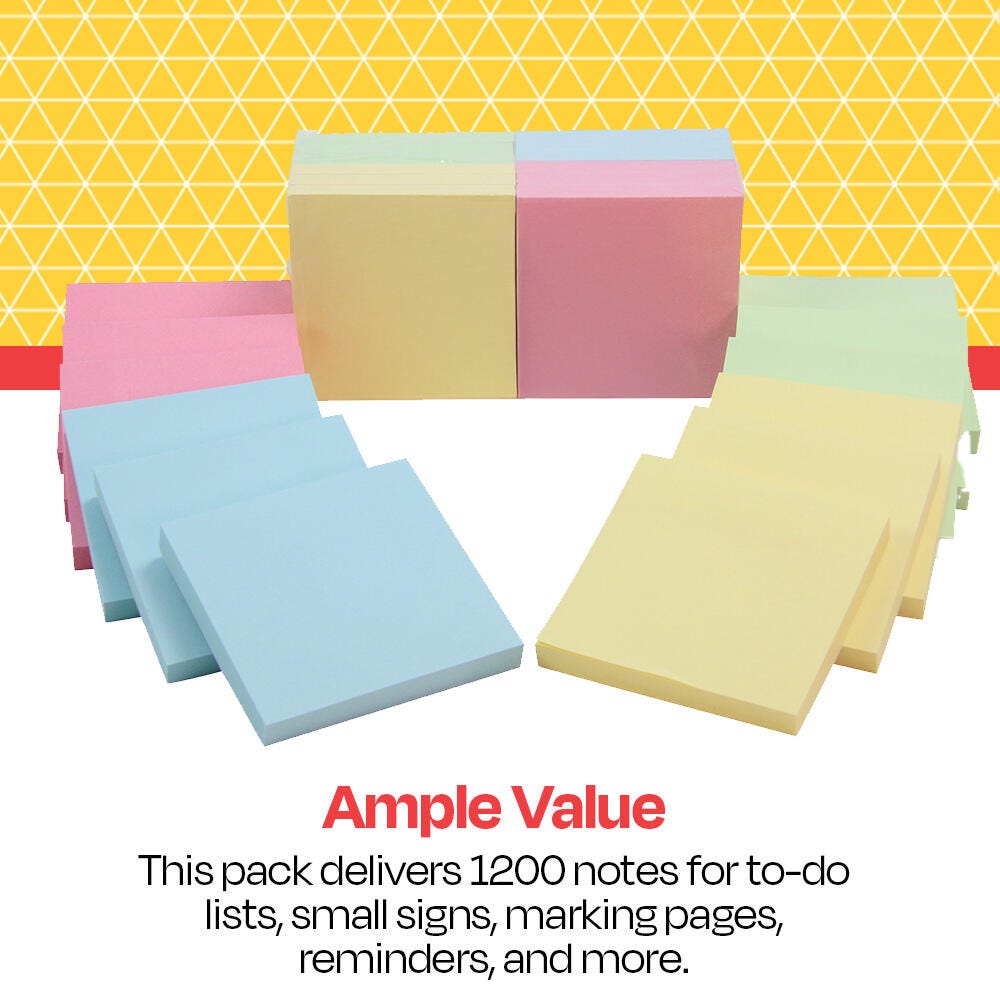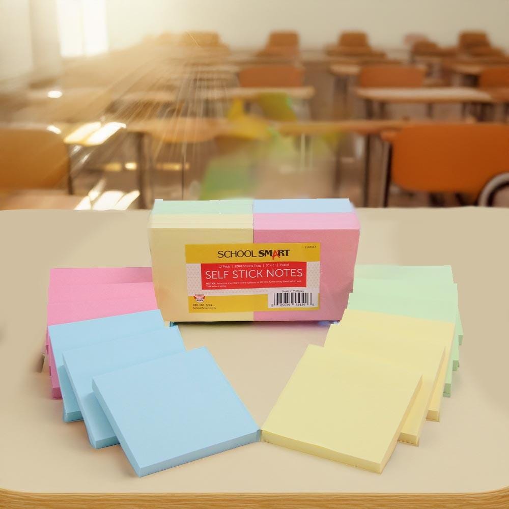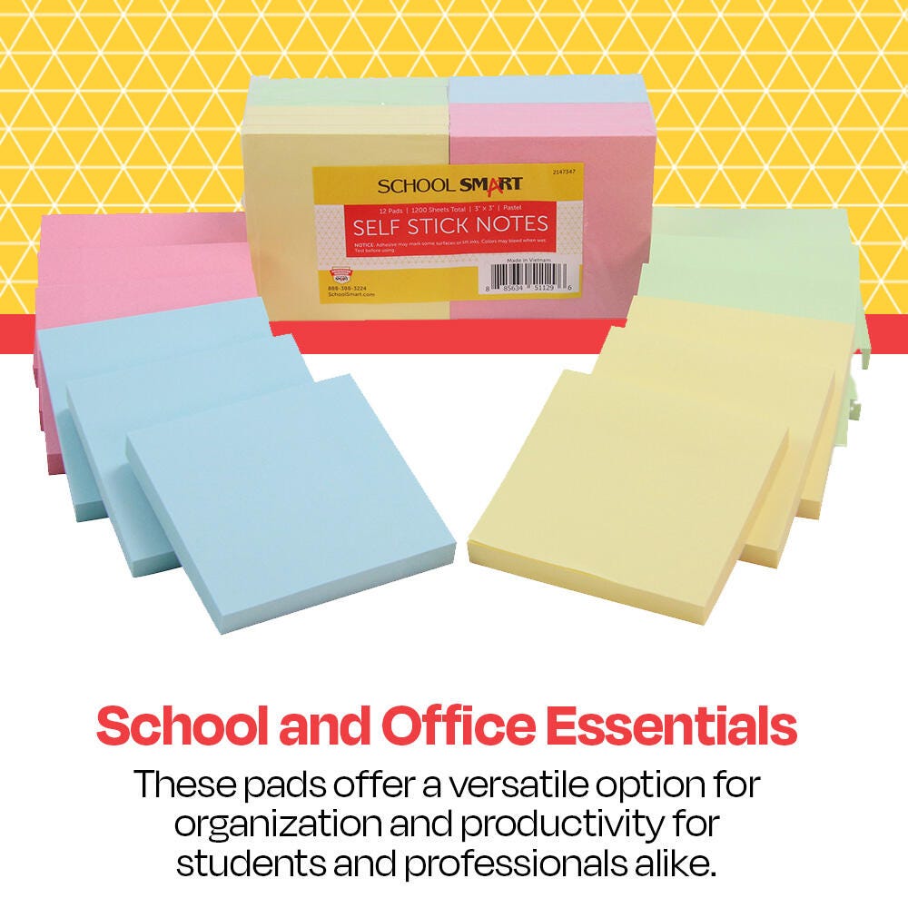 School Smart Removable Self-Stick Adhesive Notes, 3 x 3 Inches, Assorted Pastel Colors, 100 Sheets/Pad, Pack of 12