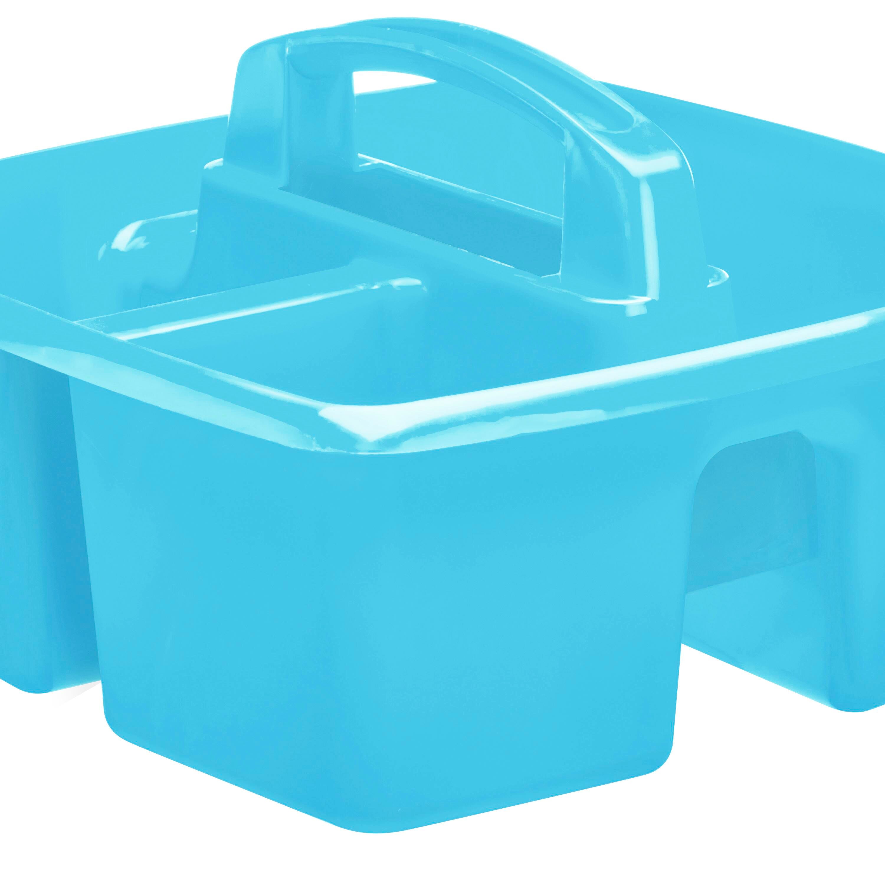 Storex Small Caddy with Handle, 3 Compartments, Bleached Teal, Pack of 6