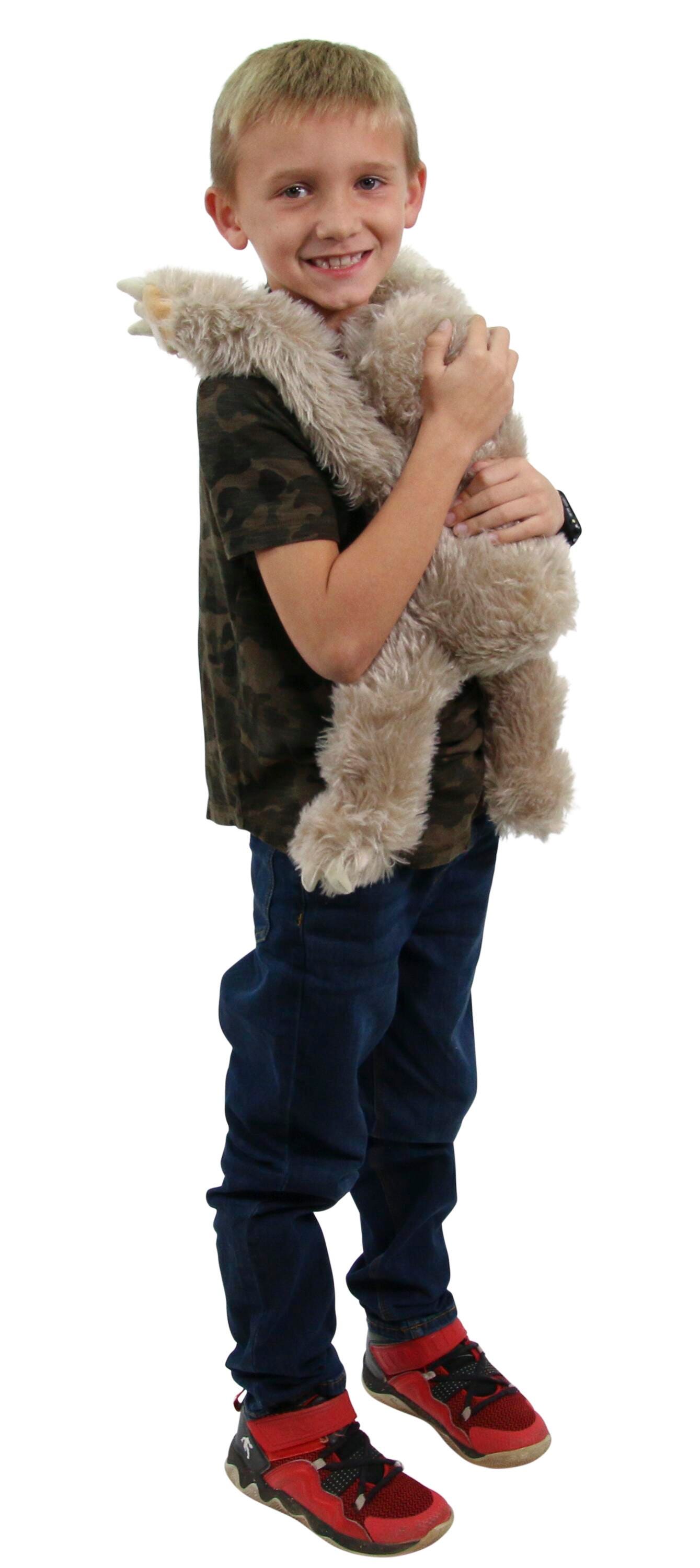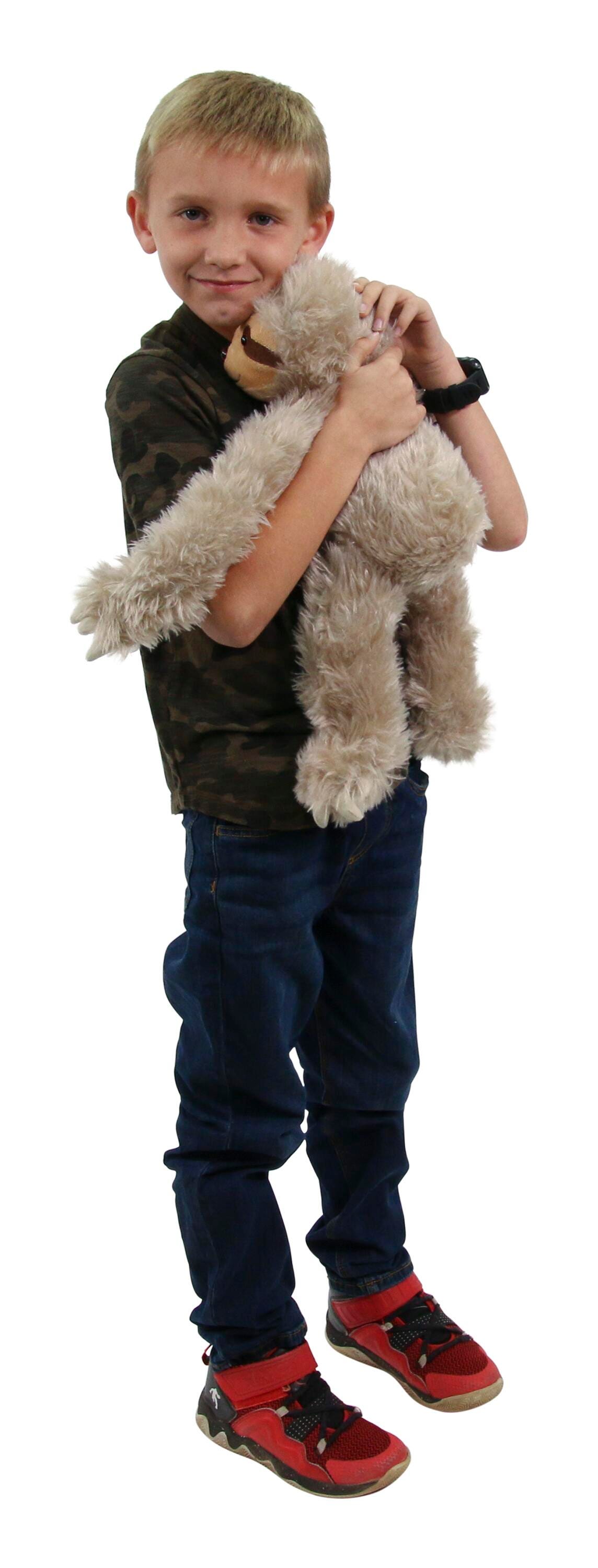 Our huggable sloth is a cuddly weighted companion that helps decrease fidgeting and increase focus. This furry friend features strong hook and loop on its paws. Hook and loop each arm together for a calming hug that provides gentle weight on the shoulders and back or place the sloth on the lap to create a soothing sensory experience. Use with supervision for 20 minutes at a time or as recommended. Filled with plastic pellets for even weight distribution. Surface wash only. Air dry. Measures 18 L x 10 W x 5 H inches. Weighs approximately 4 pounds. For children 4 years and older with adult supervision.