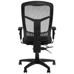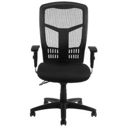 Classroom Select Ergomesh Seating Executive Mesh High-Back Chair incorporates a mesh back, mesh fabric seat, and an ergonomically designed high back design for the natural curvature of a person's back. The chair arm allows the user to adjust the seat height from the floor from 12 to 21 inches. It facilitates adjusting arm height and width for additional convenience. The high-back chair offers a nylon five-star base, pneumatic seat-height and depth adjustment, 360-degree swivel, synchro-tilt, center and knee tilt, tilt lock, adjustable back angle, forward seat tilt and asynchronous three-lever control. Measures 28-1/2 x 28-1/2 x 45 inches. Weight capacity is 275 lbs. Frame and premium seat ship separately.Features
