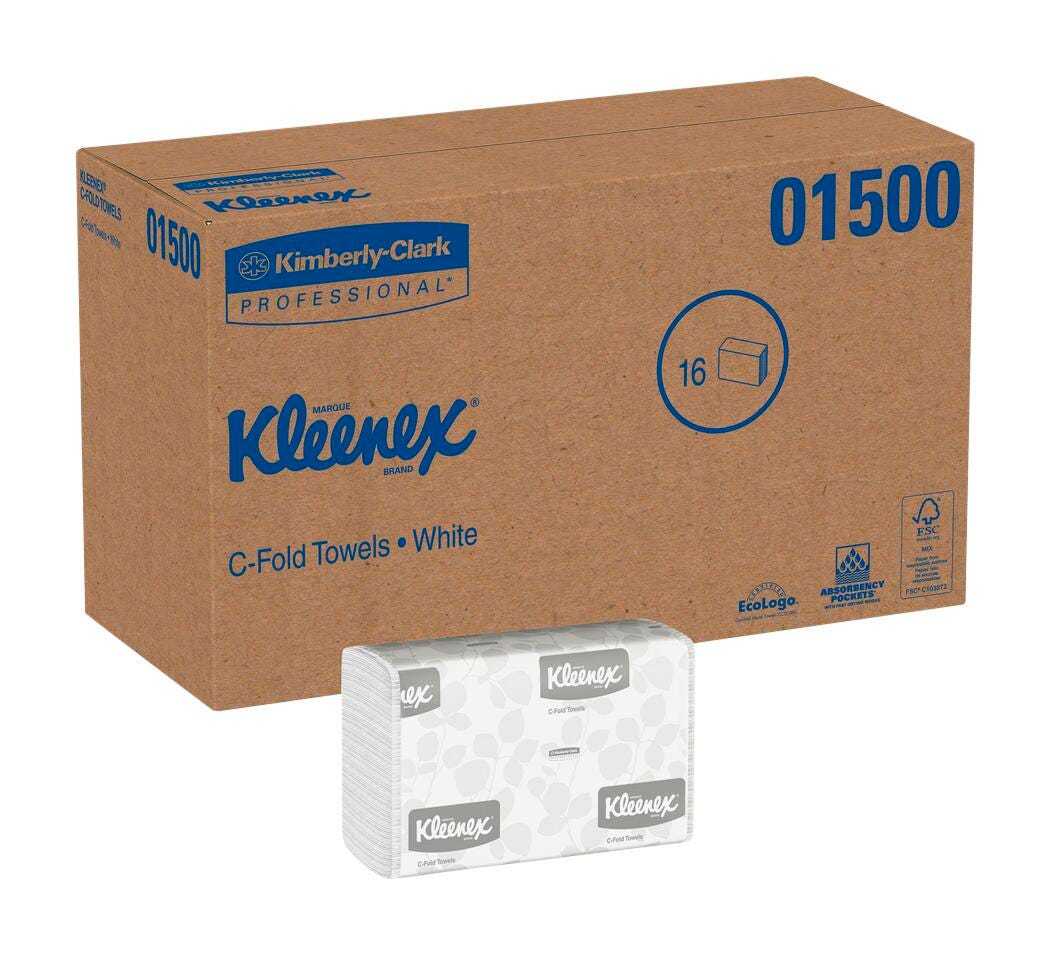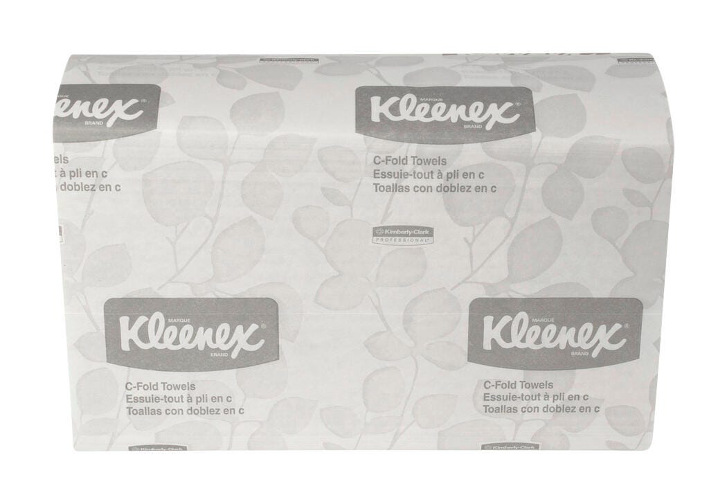 Kleenex Premium White C-Fold Towel Pack contains 150 towels measuring 10-1/8 x 13-1/7 inches and is designed for softness, absorbency as well as performance. Towel contains a minimum 40% post-consumer waste content. It is sold as 2400 per pack.