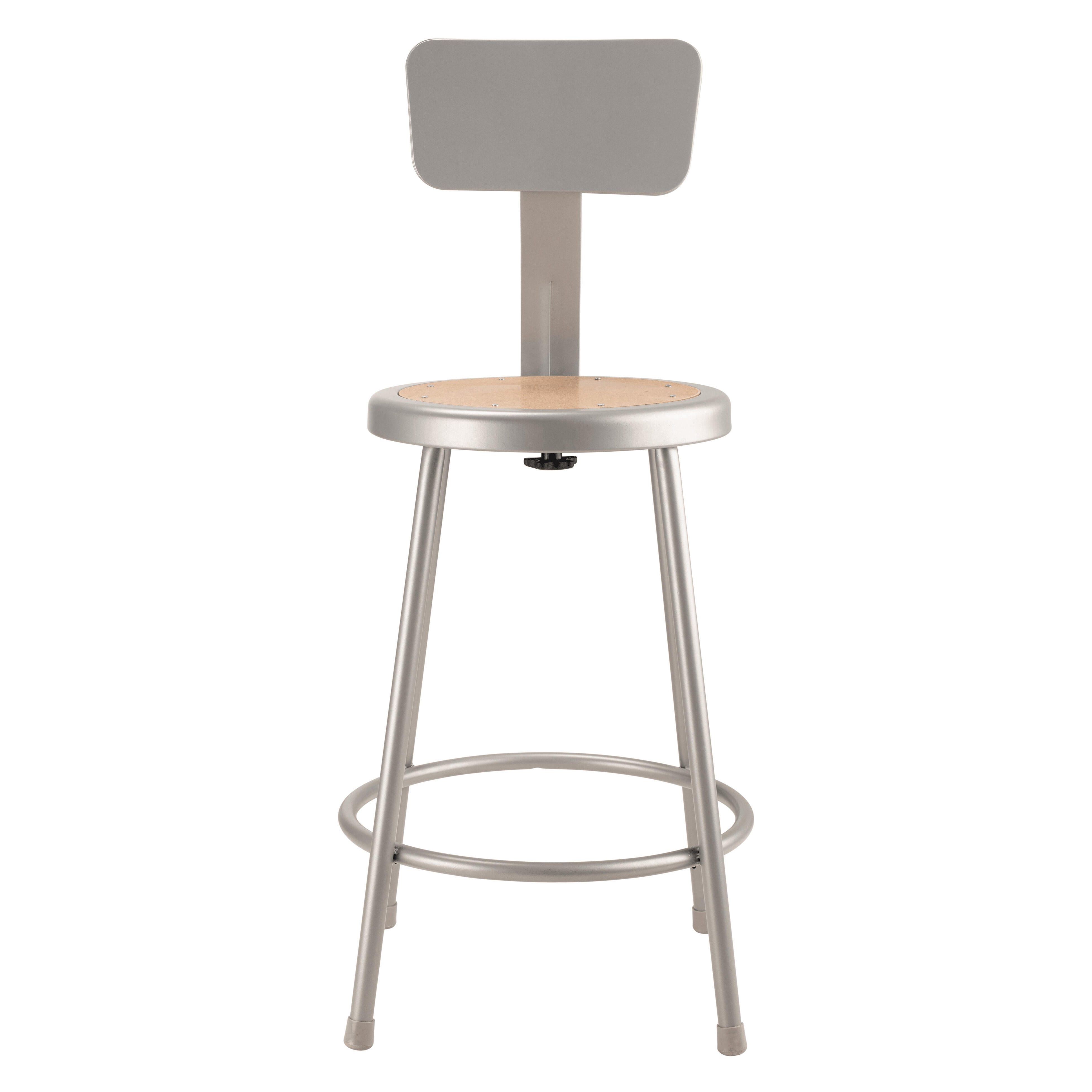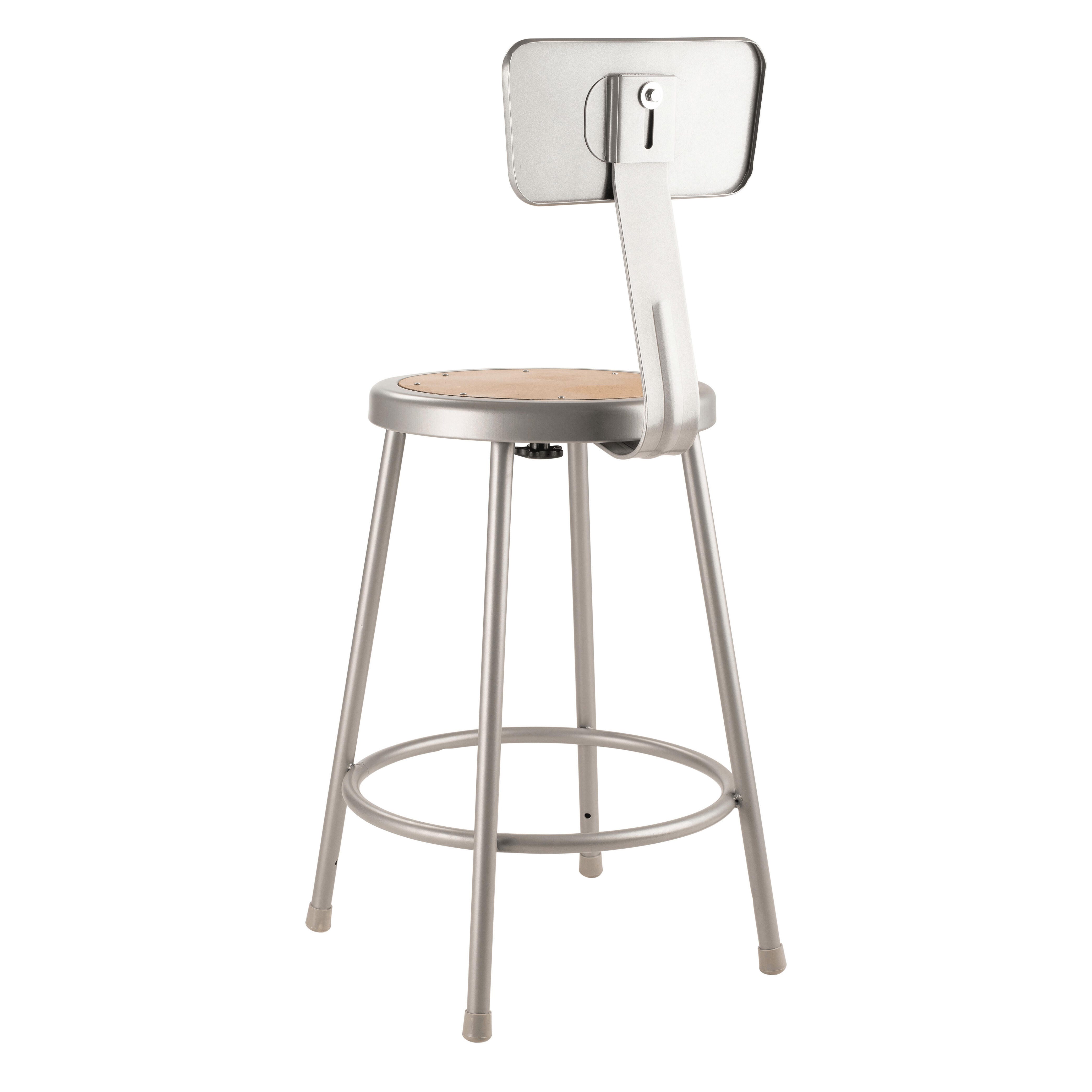 National Public Seating Heavy Duty Steel Stool with Backrest, 24-Inch Seat Height, Gray