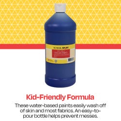 School Smart washable finger paint lets young children’s imaginations soar. This blue washable finger paint comes in an economical 1 quart bottle. This paint can be used for painting indoors or outdoors and arts and crafts projects at schools, childcare centers, or homes. Children can explore the tactile world through hand and finger painting for beginners. Little hands have fun, while clean up afterward is a breeze for teachers and parents. The vibrant, fast drying paint for kids has a smooth texture. This non-toxic finger paint washes out of most clothing with soap and cold water.Features