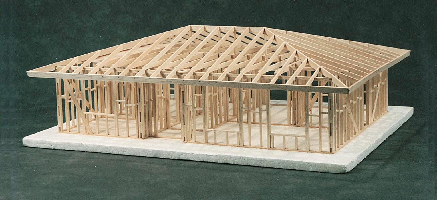 Features 9 working drawings of a single-story home with 2 bedrooms, 1 bathroom, kitchen, hallway, dining room and living room. Dimensions relate to standard dimensions such as 2 x 4, 1 x 6, 2 x 8, 4 x 4, etc. with lumber cut to thousandths of an inch tolerances. Each kit is designed to teach students the principles used in real world house framing. Kit contains instruction booklet that explains purposes of each type of lumber and step-by-step pictures of house framing details. Optional refill kit contains replacement balsa and nails to allow you to reuse framing kit again and again at a fraction of the cost of a full kit. Components are framed as in a real house and students can construct some framing details on the working drawings.