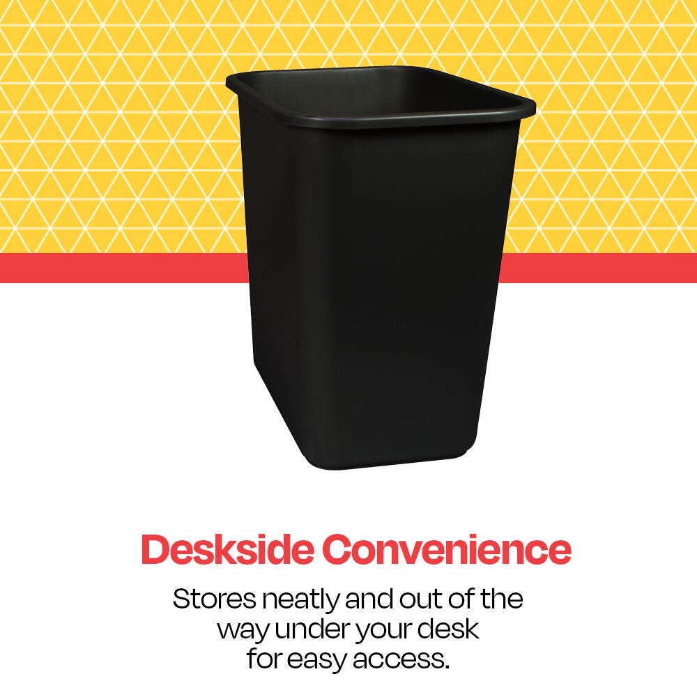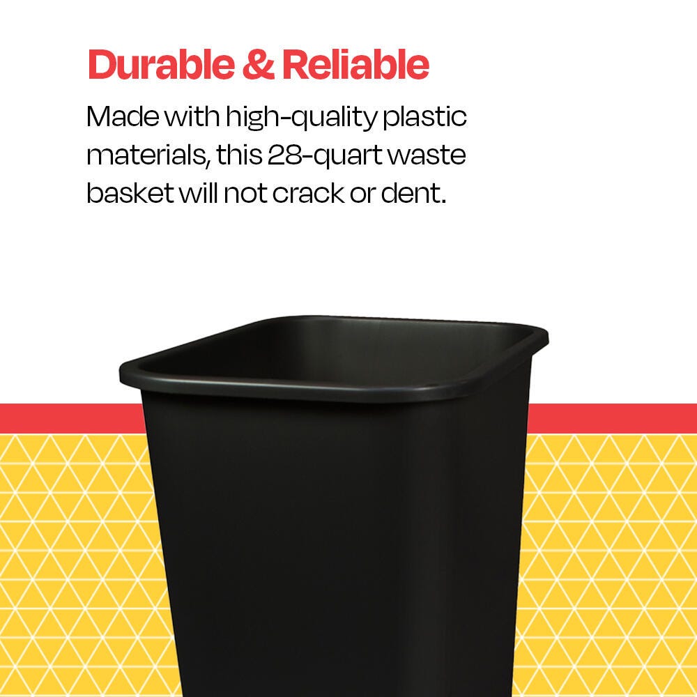 This 28-quart Indoor Waste Basket from School Smart is perfectly sized to fit under a table, desk, or cabinet for discreet and space-saving waste management. The compact size is excellent for offices, bathrooms, bedrooms, dorm rooms, and other places where space may be limited. Its durable plastic construction is crack- and dent-resistant and comes in a matte black color that fits almost any space.