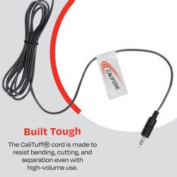 • A highly durable CaliTuff cord is made of braided, PVC-jacketed material with a reinforced earcup entry point to resist bending, cutting, and separation
