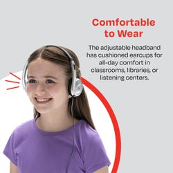 Amp up learning and fun with these basic on-ear headphones for classrooms, libraries, listening centers, and homes. Comes in silver.