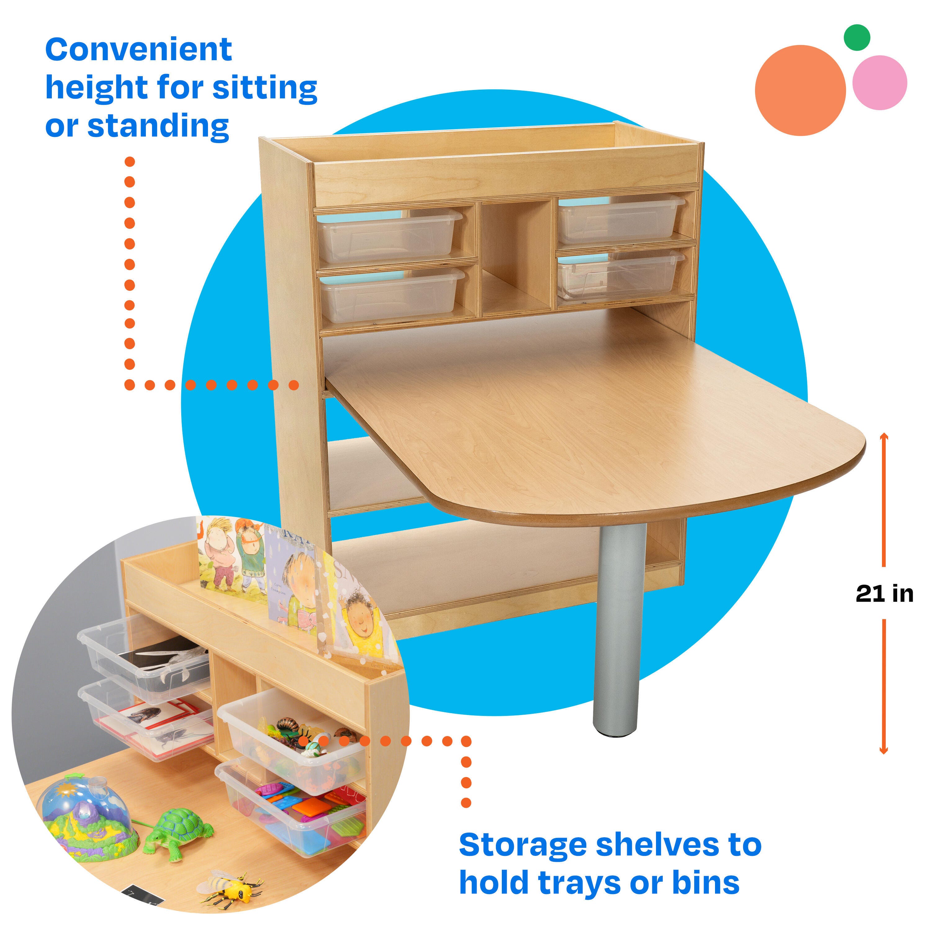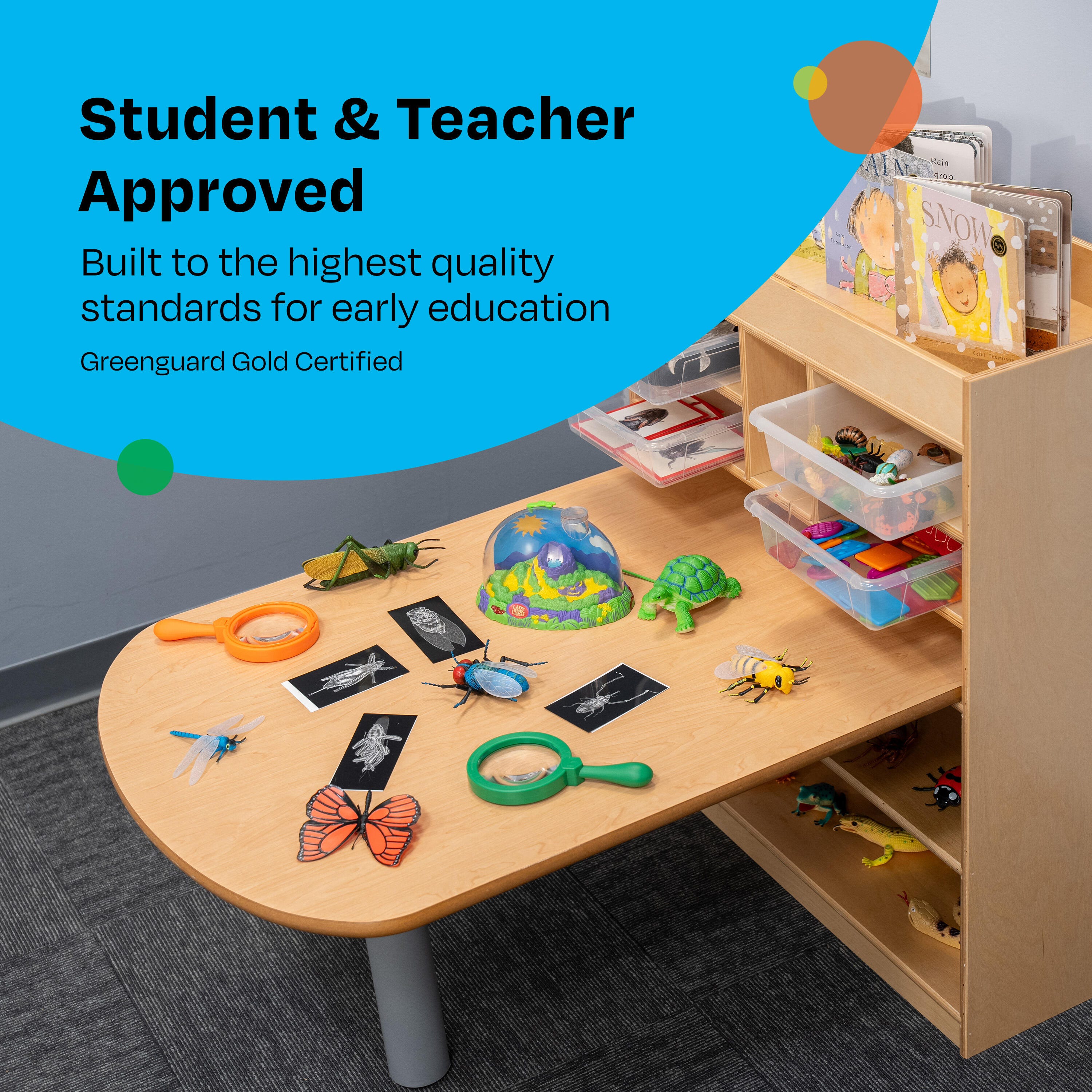 Work together in the classroom with an activity table featuring storage space and 4 clear bins.