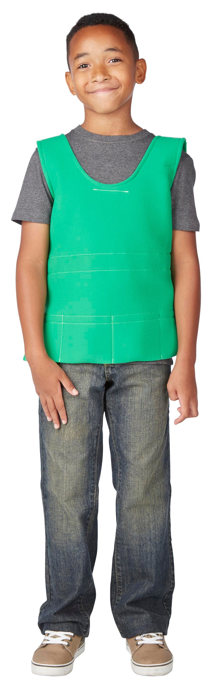 Weight and pressure provide the body with additional input to the muscles and joints, providing the proprioceptive system with more information. This vest uses hook and loop closures at the shoulders and sides allow for easy placement and adjustment. Side closures around back prevent unwanted adjustment or removal. Extra fabric at the side closure overlaps to allow room for growth and the bottom portion of the vest folds up to shorten the vest for individuals with shorter midsections. A common weight recommended for use is 5% of a client's weight; please consult with the child's therapist to adhere to their individual need. Measure around the chest for width, and from shoulder to waist for length. Vest measures 34 x 17 to 22 inches.Features