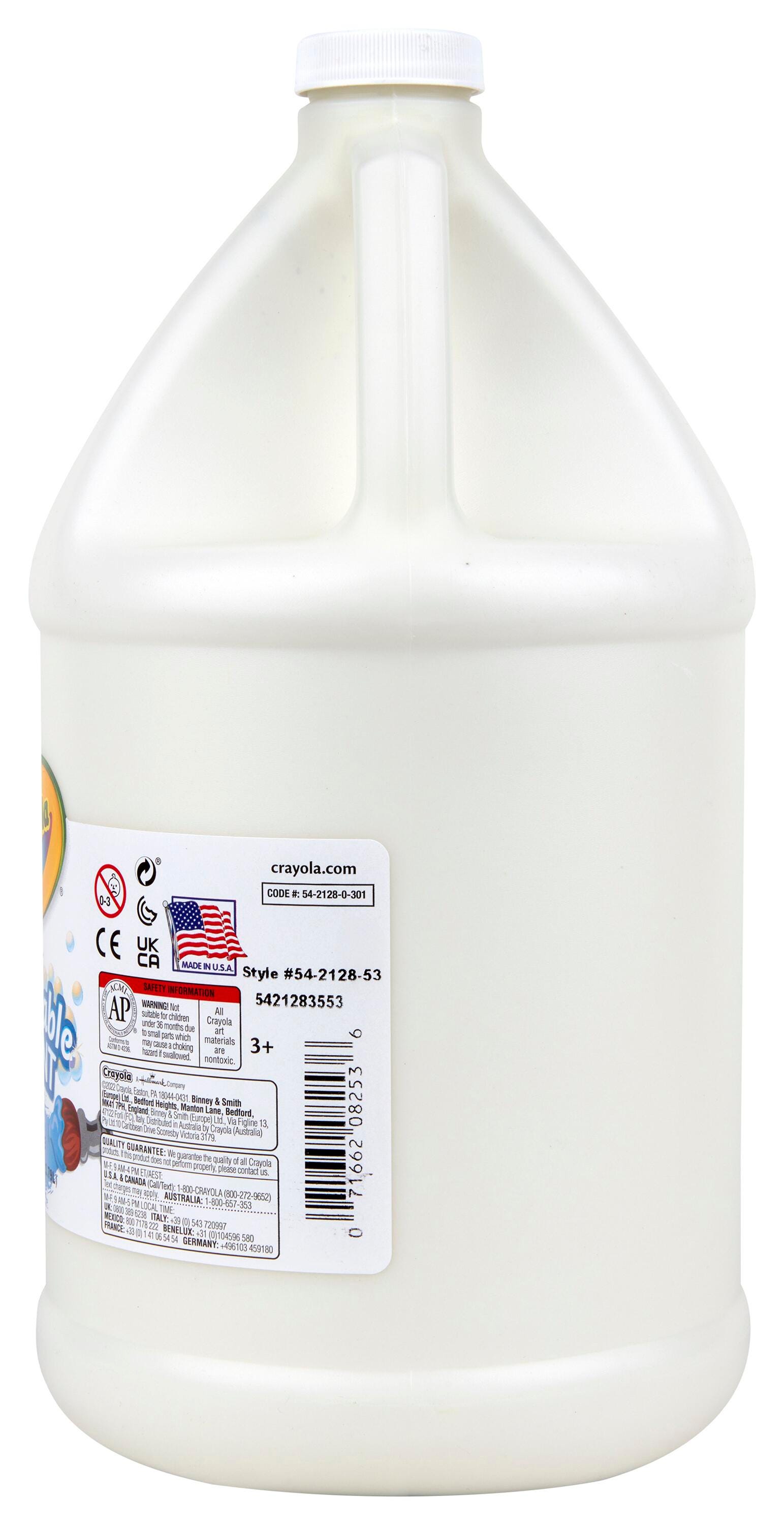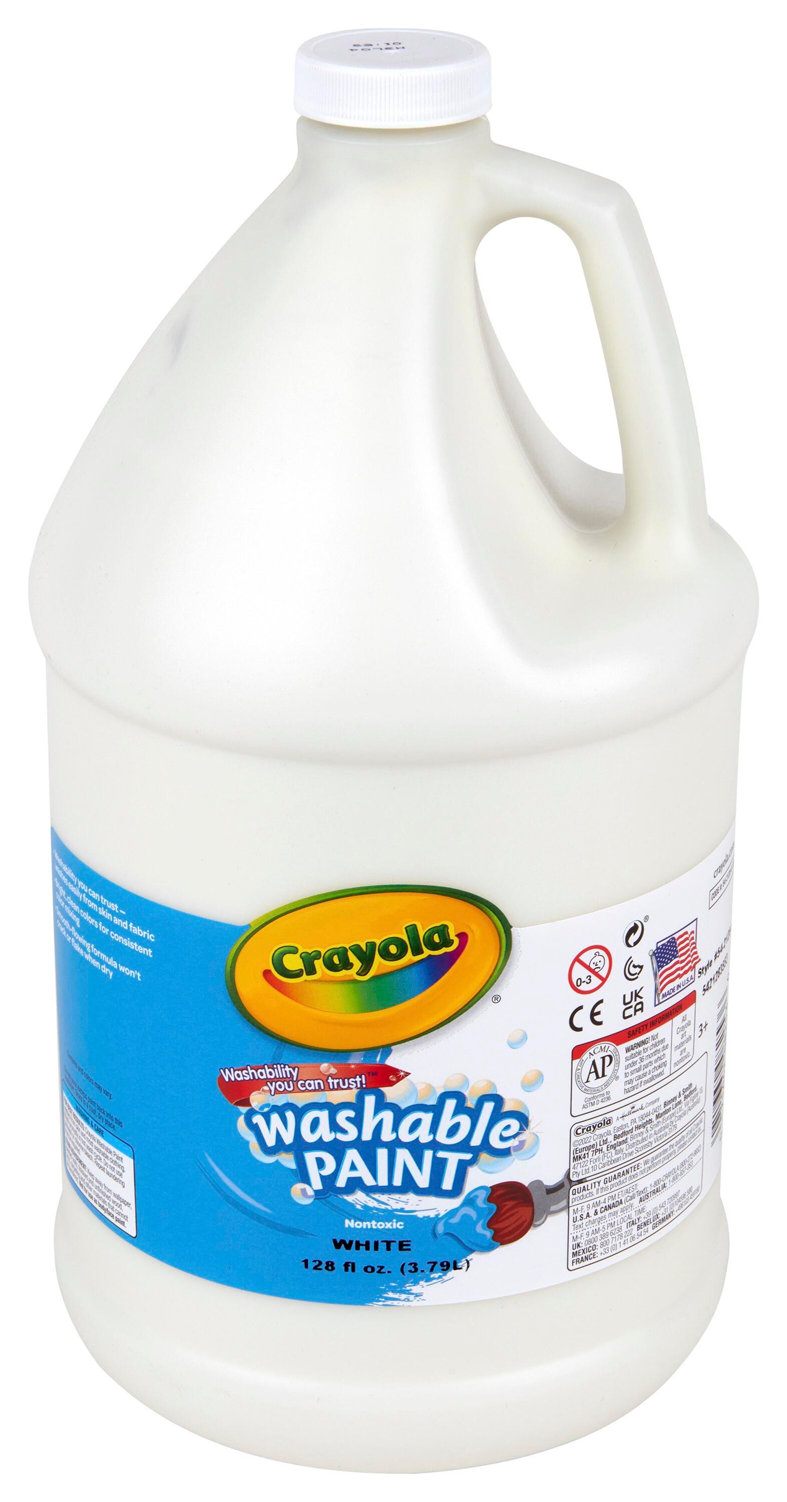 Enhance any artwork with high-quality and vibrant Crayola Washable Paint! The paint's thick, creamy consistency provides rich color and an opaque covering on most surfaces. Plus, this child-friendly paint is easily washed from skin and almost all clothing. This pure white paint comes in a 1 gallon plastic jug with a screw lid so it is easy to pour—great for large groups or big projects in the classroom, childcare center, or home.Features