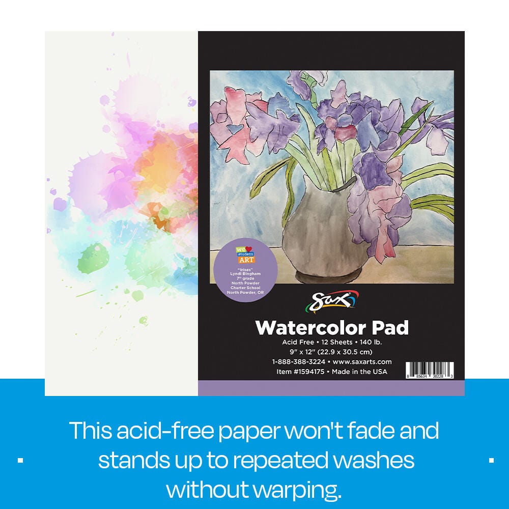 The Sax Watercolor Paper Pad is the perfect option for students practicing their technique. The paper is specially designed to hold up to repeated washings during watercolor projects and is also suitable for use with dry mediums. This pad offers 12 sheets of 140-lb basis-weight watercolor paper with an acid-free construction that resists fading. Each sheet measures 9 x 12 inches.