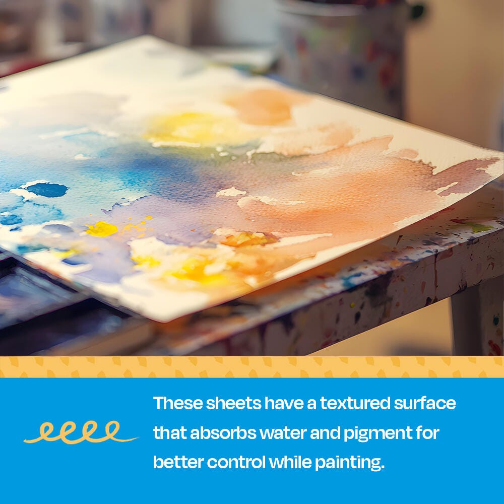 Heavy-weight construction makes this paper ideal for use with watercolors but can be used with a variety of other mediums for versatile application