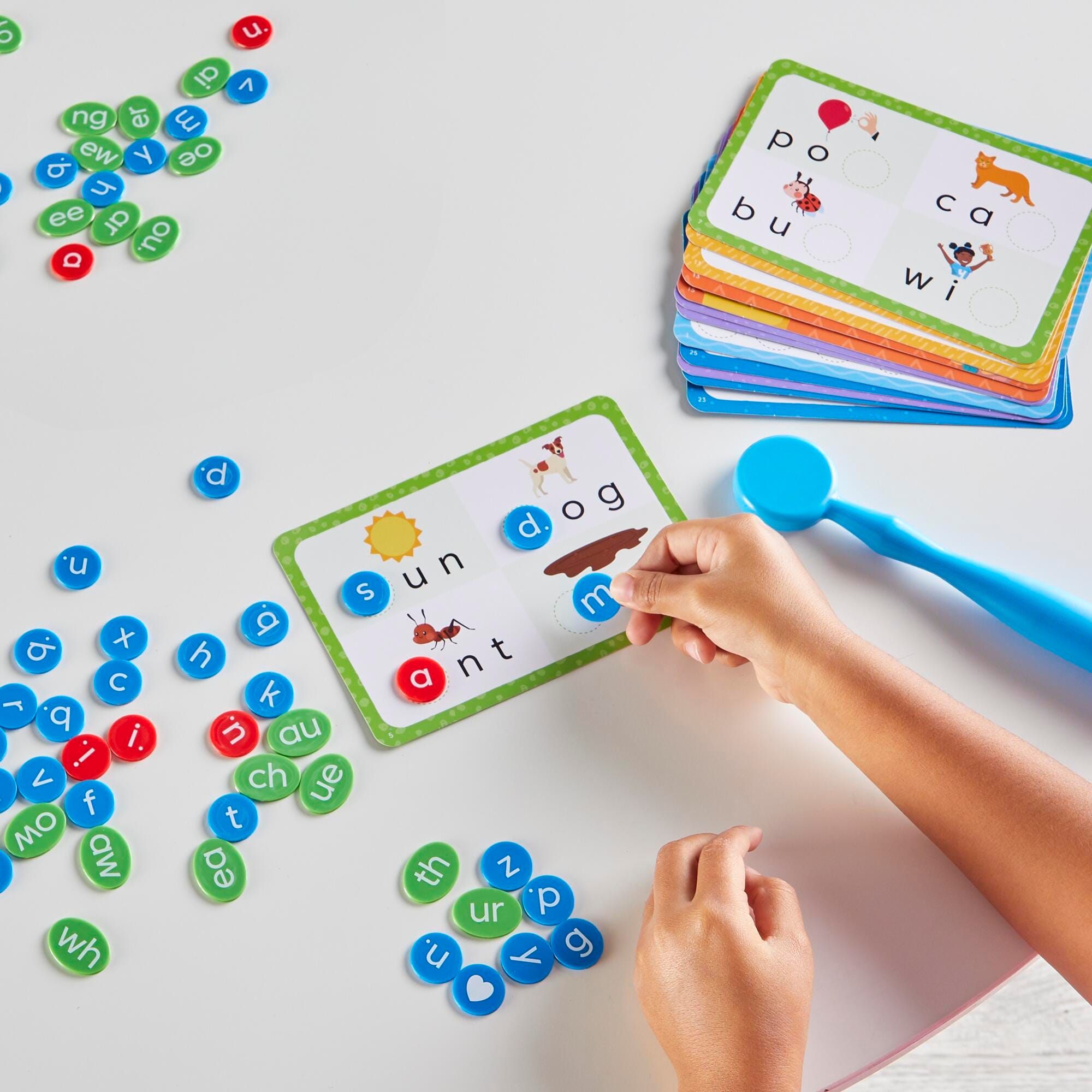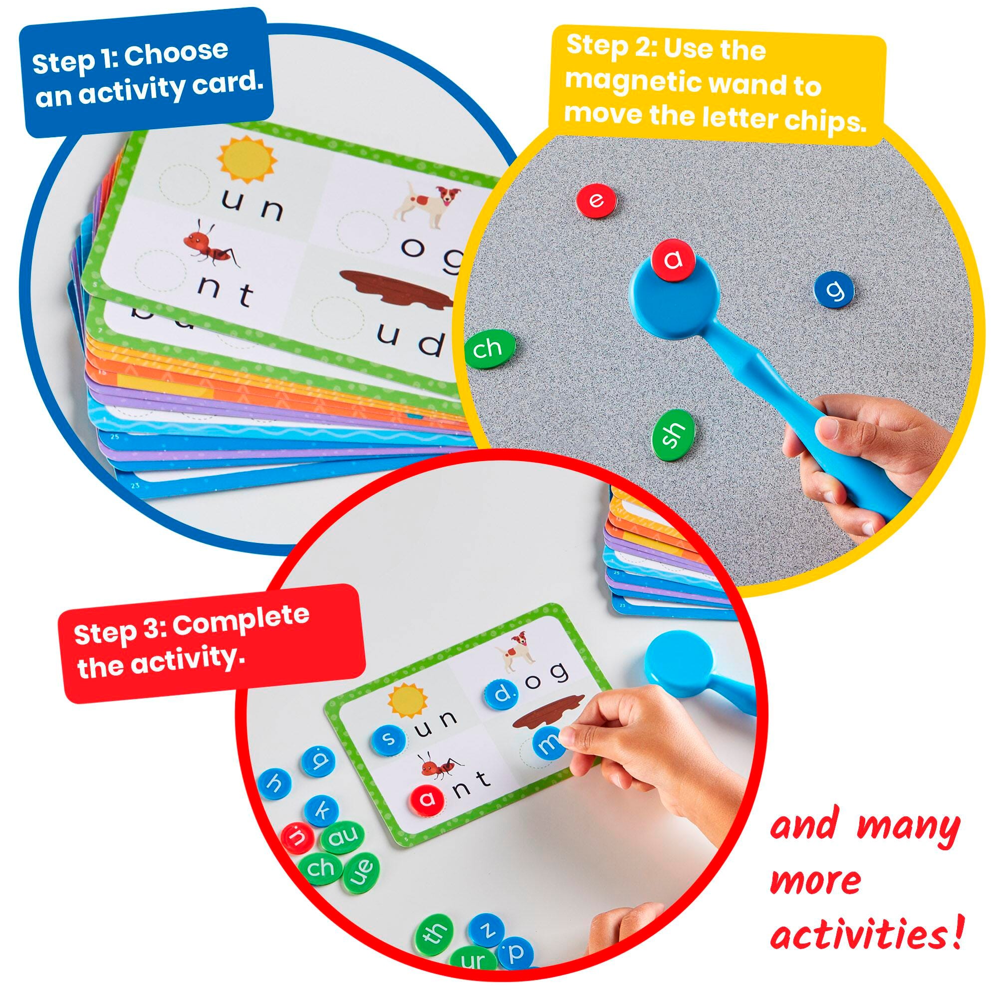 Children have fun using the Magnetic Wand and different types of chips to learn early literacy skills including matching uppercase and lowercase letters, learning initial and ending sounds, and blending and segmenting sounds.
