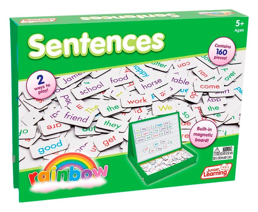 Rainbow Sentences is a wonderfully hands-on magnetic resource which will stimulate your student’s creativity and excite them about developing their literacy skills by literally building sentences! Through a range of nouns, verbs, adjectives, pronouns, sight words and punctuation children will, not only understand how to construct different sentences but can have endless hours of fun creating their own interesting and silly sentences and stories. This pop-up box with an in-built magnetic board means that children can take their Rainbow Sentence builder wherever they go in this easy to carry pack. Contains 160 pieces and built-in magnetic board. Appropriate for ages 5 years and up.Features