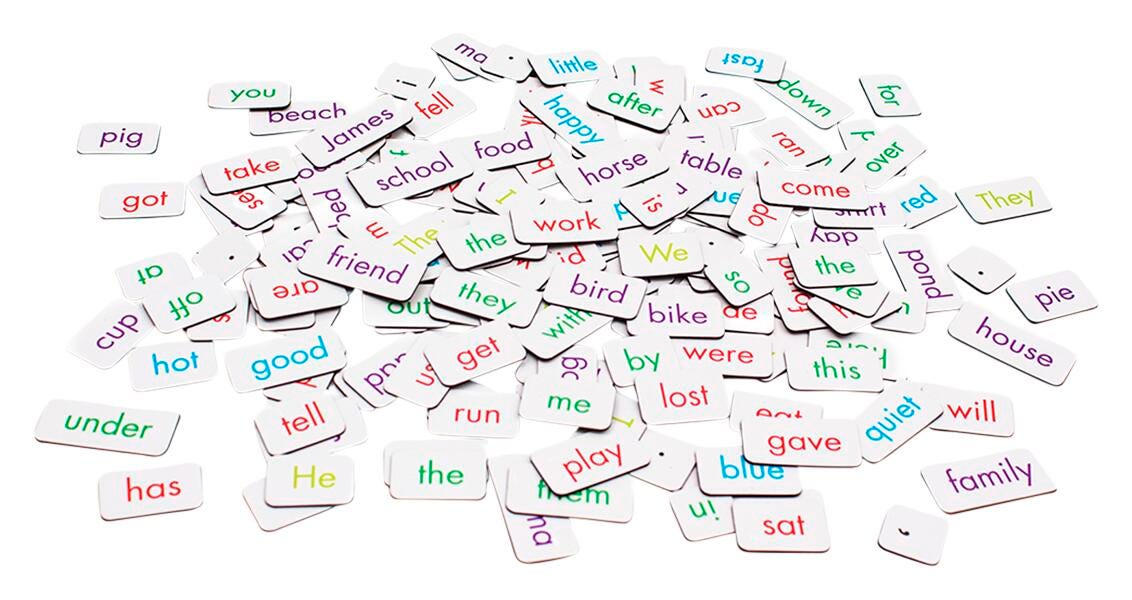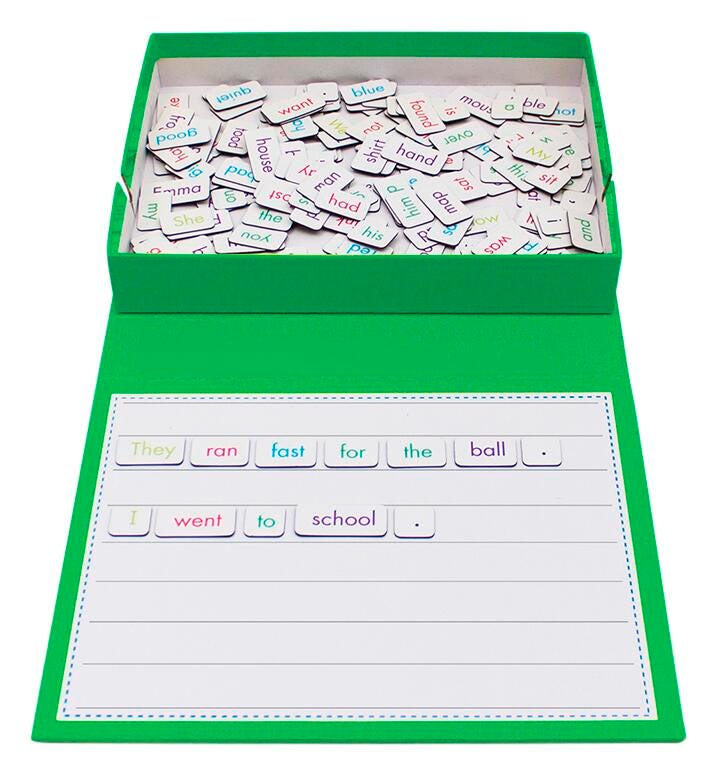 - Each type of word is color-coded to help facilitate word recognition and sentence construction