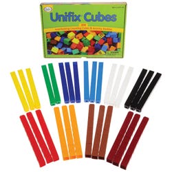 Introduce your students to the Gold Standard in math manipulatives! This pack of Unifix Cubes includes 300 cubes in 10 standard colors: red, dark blue, light blue, yellow, green, orange, maroon, brown, black and white. Grades K to 6.Features